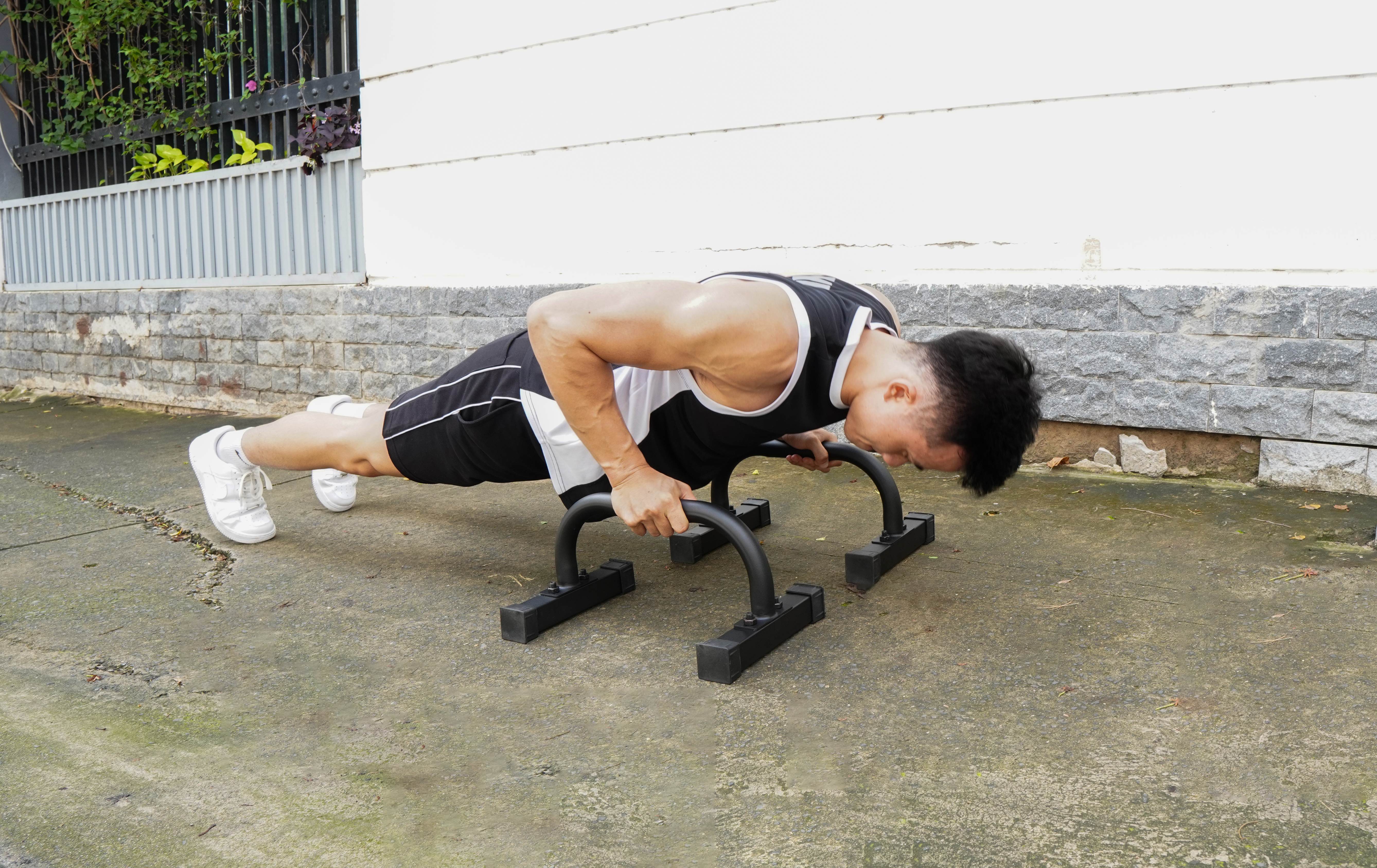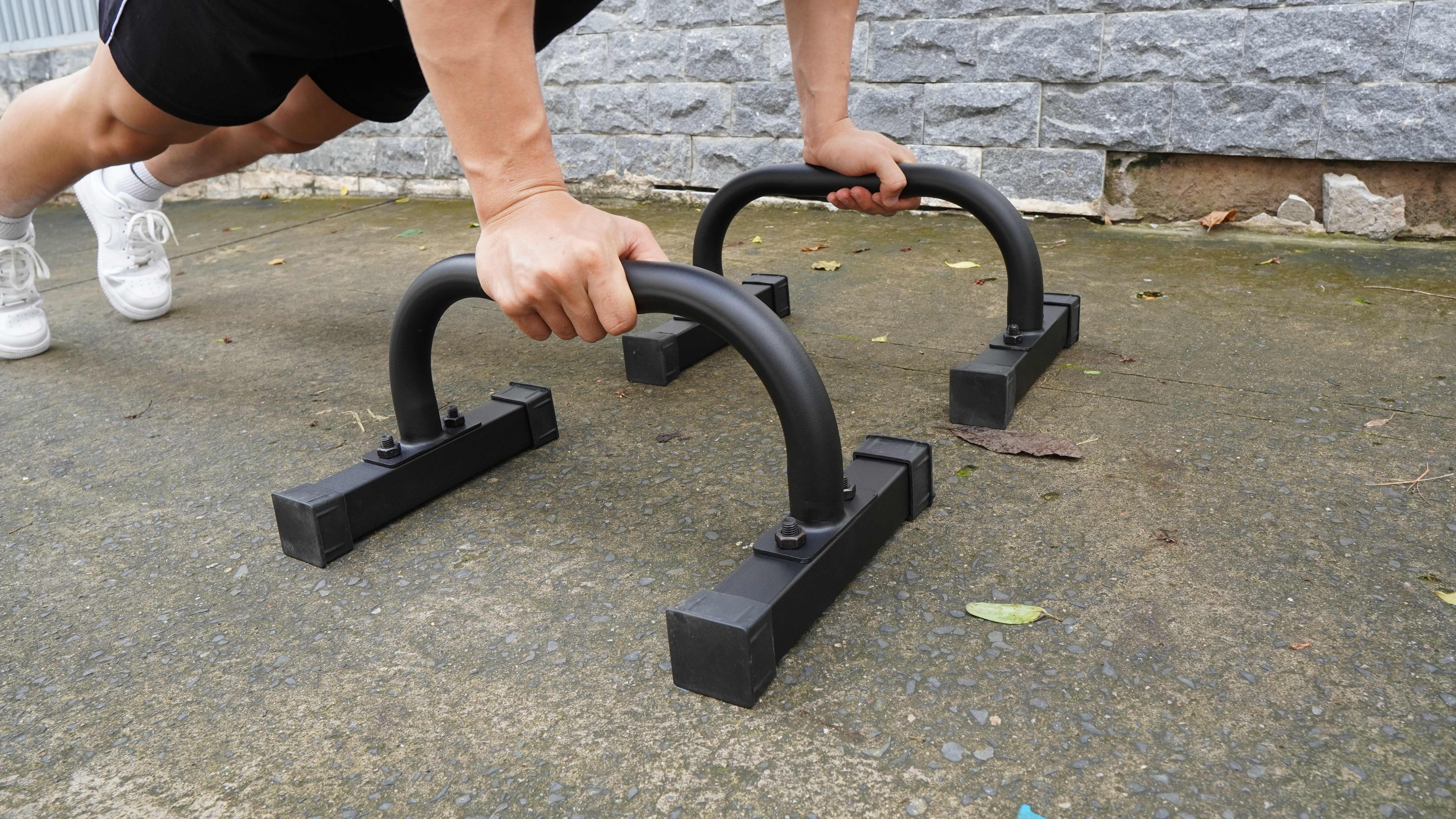 Cặp dụng cụ chống đẩy (tay cầm hít đất) là một dụng cụ hỗ trợ chống đẩy vô cùng hiệu quả. Khi thực hiện, phần thân trên cơ thể được hạ xuống sâu hơn so