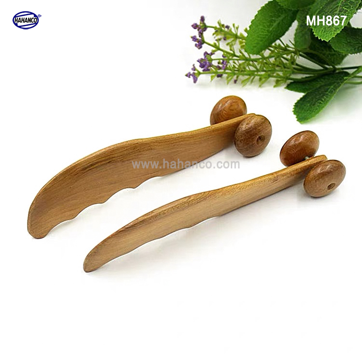 Dụng cụ massage được thiết kế có 2 bánh xe tròn bằng gỗ Bách Xanh, dùng để lăn mũi, vùng mặt có tác dụng massage các huyệt đạo dọc theo sống mũi, quanh vùng mắt, dễ dàng di chuyển trên khắp vùng mặt, giúp tăng tính đàn hồi cho cơ mặt, giúp giảm căng thẳng mệt mỏi, hỗ trợ lưu thông khí huyết.