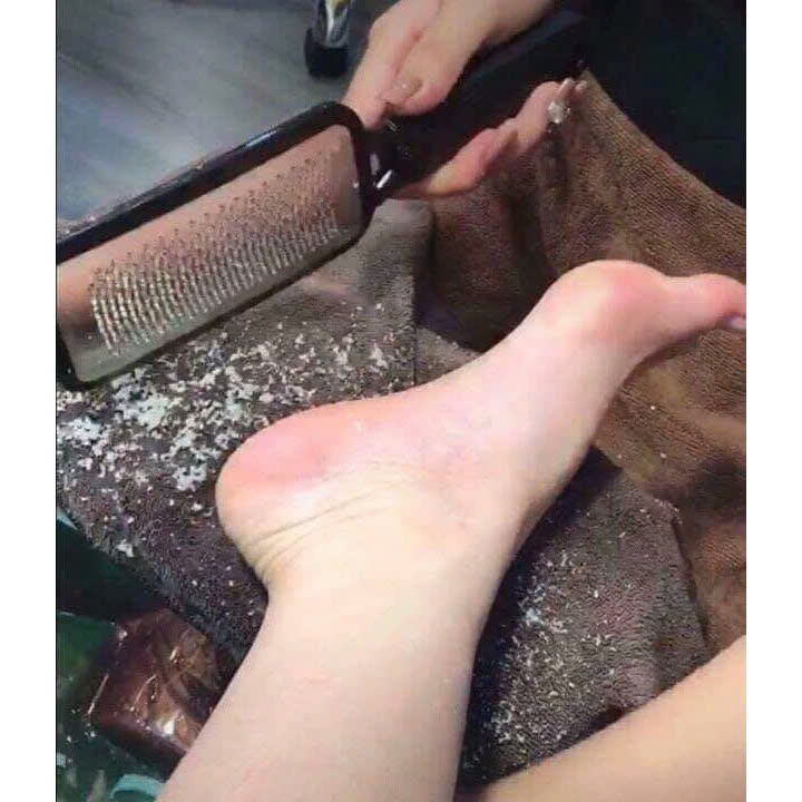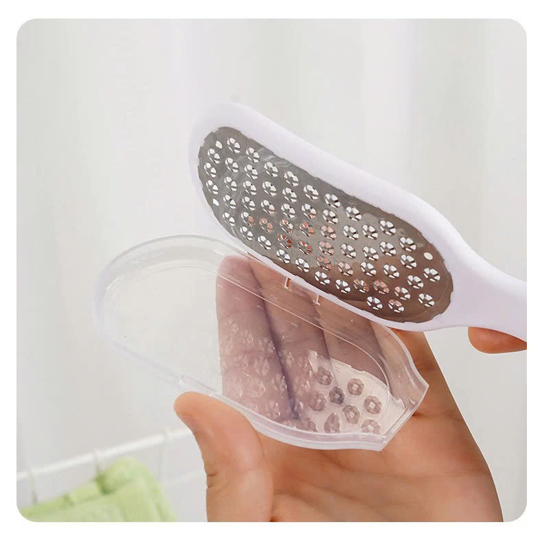 Dụng cụ chà gót chân tẩy tế bào chết, chà gót chân bằng thép không gỉ có nắp chứa tiện lợi