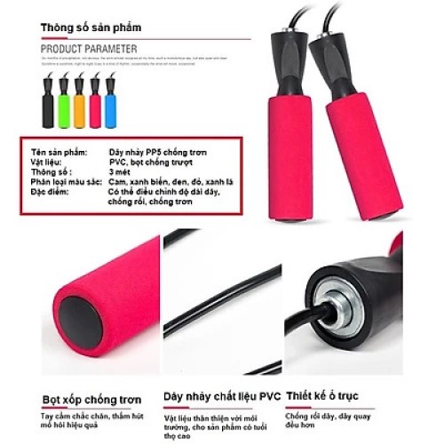 Dụng Cụ Nhảy Dây Tập Thể Dục Chất Liệu PVC 2m7 Tùy Ý Điều Chỉnh Kích Thước - Chính Hãng Dây nhảy thể dục PP5, chất liệu PVC 2.7m tùy ý điều chỉnh là một trong những dụng cụ tập thể dục hữu ích giúp bạn luyện tập thể thao hiệu quả, cải thiện hoạt động của tim, tăng cường thể lực và sự dẻo dai của cơ thể. Ngoài ra luyện tập nhảy dây đều đặn còn làm săn chắc cơ đùi, eo thon, giúp nở ngực, giúp cơ thể cân đối. Sản phẩm phù hợp cho các hoạt động giảm cân, gìn giữ sức khỏe tại gia kết hợp cùng các chế độ ăn uống hợp lý, bạn sẽ có một cơ thể khỏe mạnh, tràn đầy sức sống. Đặc điểm nổi bật: