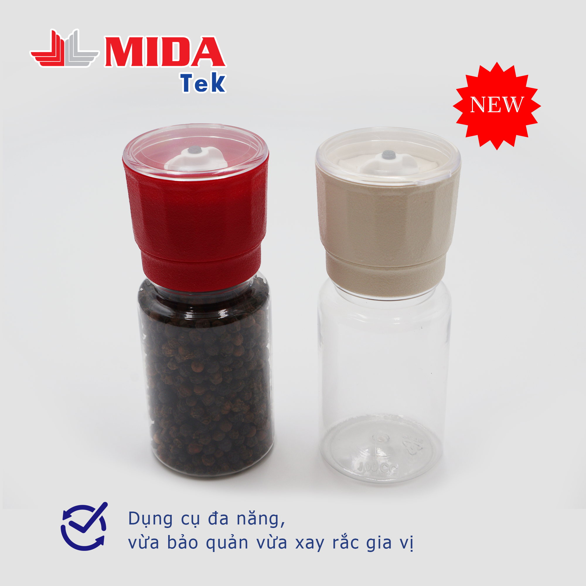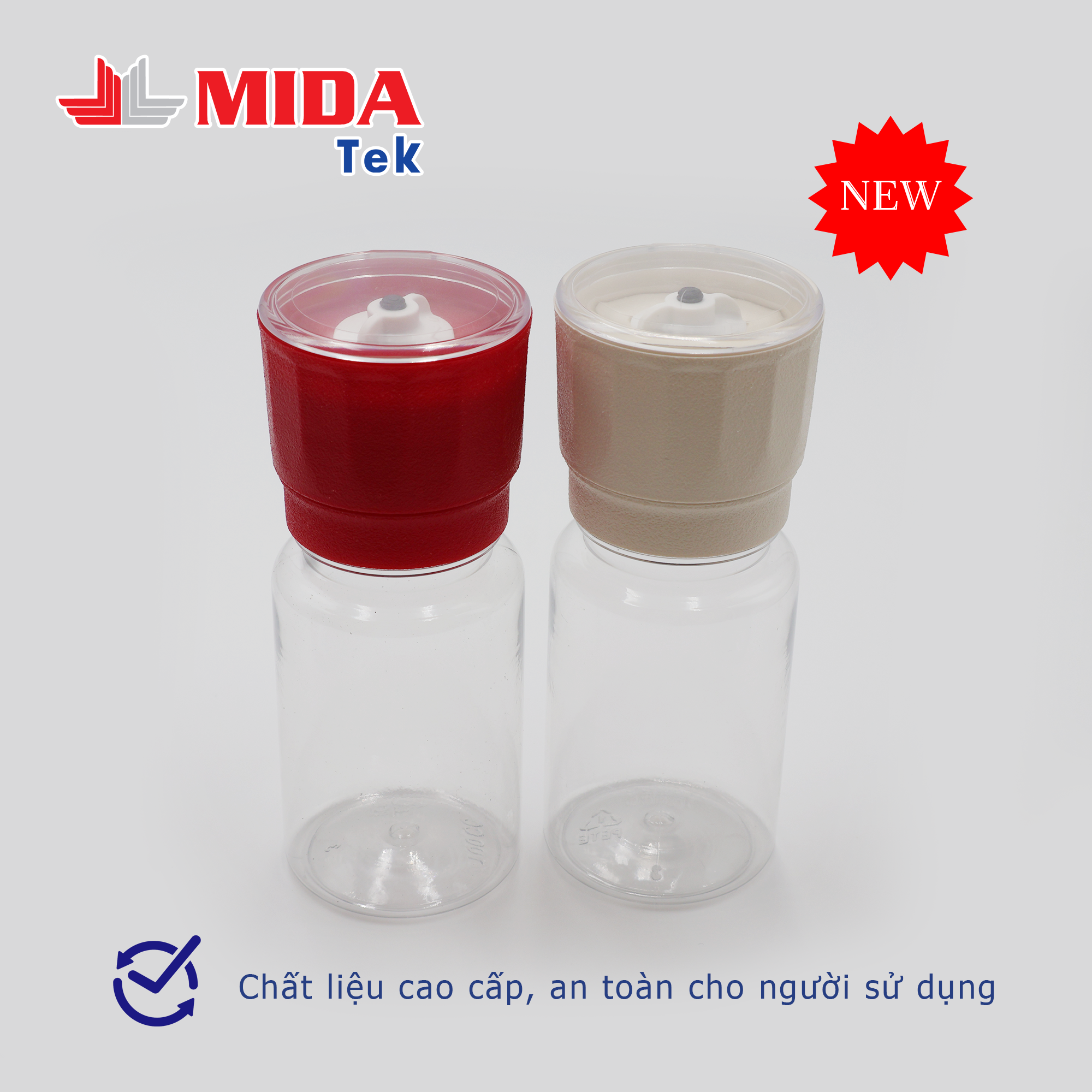 ✨Dụng cụ xay tiêu MIDATEK cối xay ceramic Màu Đỏ chai nhựa dung tích 100ml miệng hũ 38mm