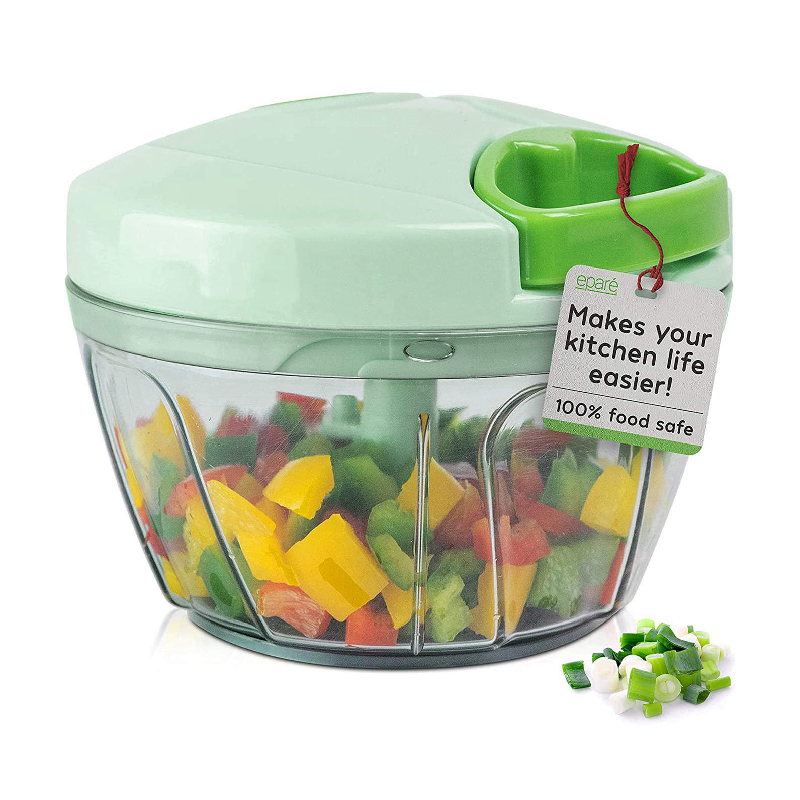 Cắt, xay nhuyễn đối với các loại hành tỏi, ớt , rau, thảo mộc, hành tây, các loại hạt...bằng tay chỉ với thao tác kéo dây cắt cực dễ và tiện Các mẹ làm đồ