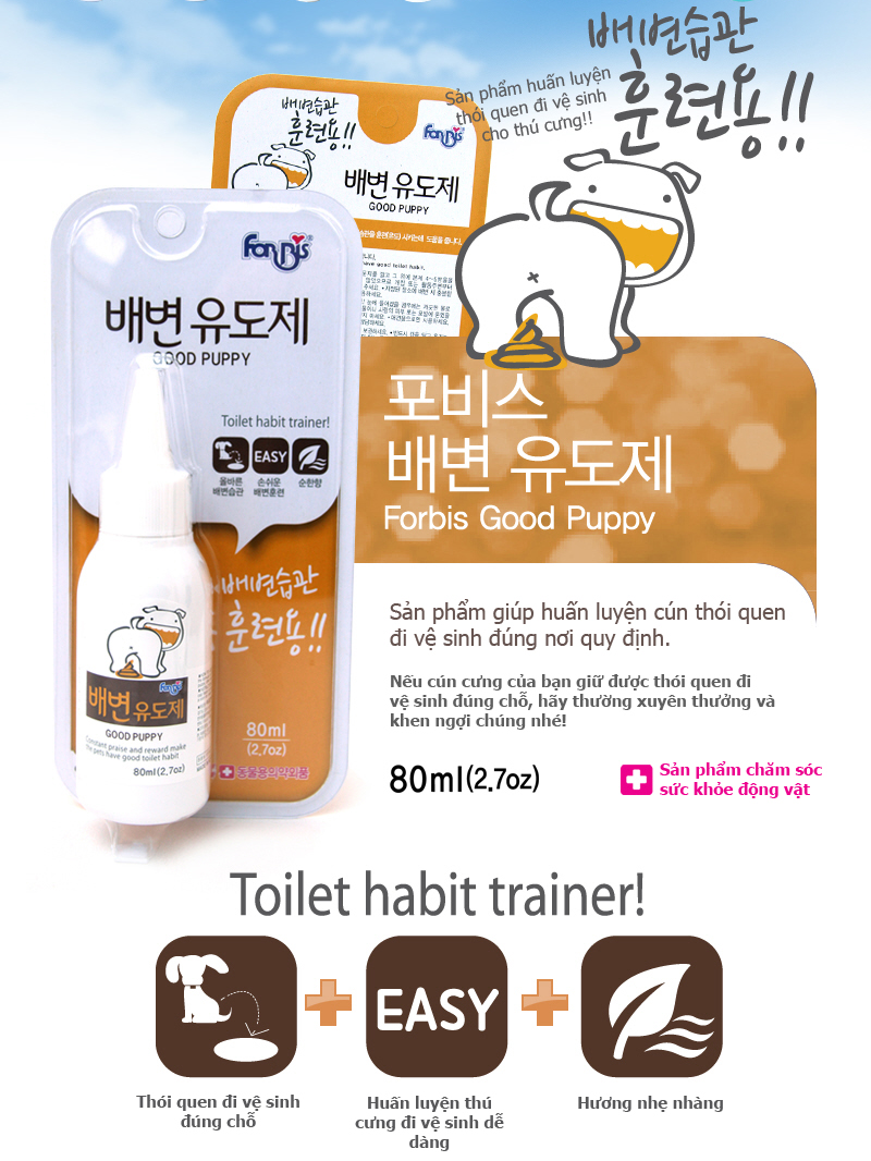 - - Dung Dịch Hướng Dẫn Đi Vệ Sinh Dành Cho Chó Mèo Forcans 8809058114798 (80ml) là sản phẩm huấn luyện giúp cún có thói quen đi vệ sinh đúng nơi quy định - Giúp