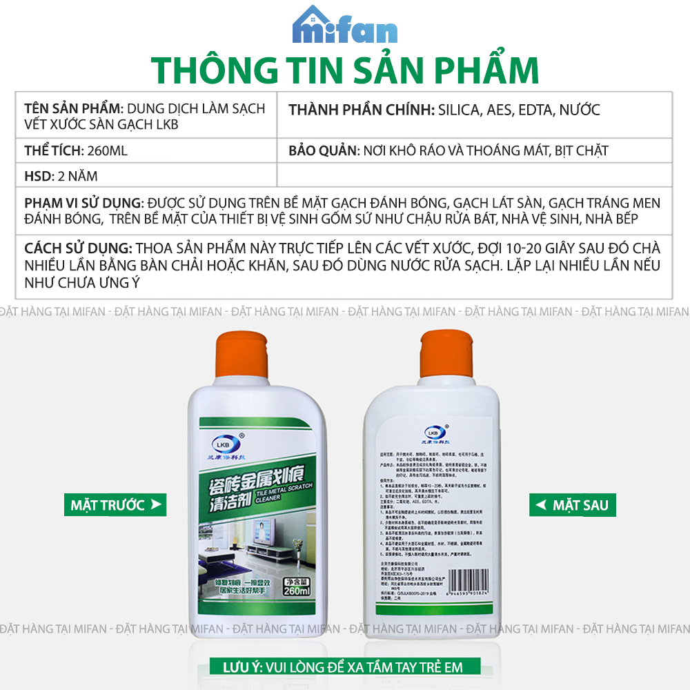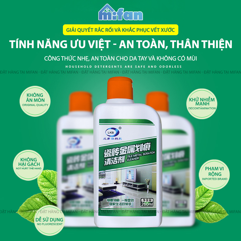 DUNG DỊCH LÀM SẠCH VẾT XƯỚC SÀN GẠCH LKB 260ML - TẨY BẨN CỰC MẠNH, AN TOÀN, KHÔNG HẠI GẠCH - ĐA DẠNG BỀ MẶT GẠCH MEN, BỒN CẦU, BỒN TẮM - MIFAN