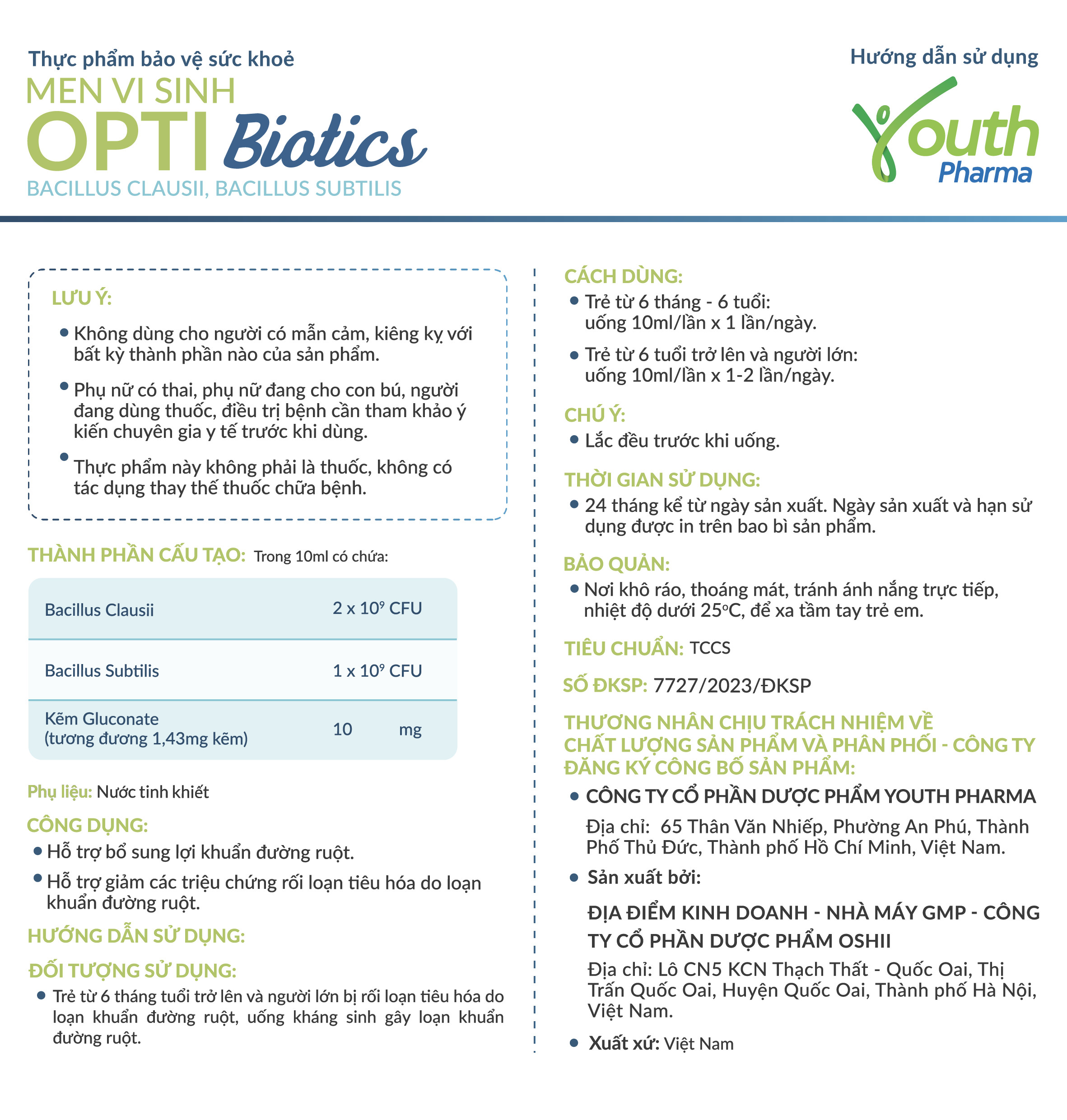 ✨Dung Dịch Opti Biotics Youth Pharma Bổ Sung Lợi Khuẩn Đường Ruôt - Hộp 20 Ống (10ml/Ống)