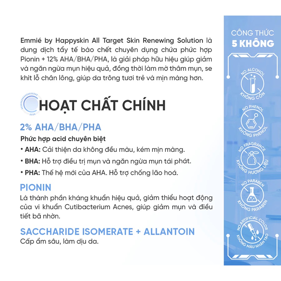 ✨Dung dịch tẩy tế bào chết và tái tạo da Emmié All Target Skin Renewing Solution Pionin + 12% AHA/BHA/PHA (120ml) - Hàng chính hãng