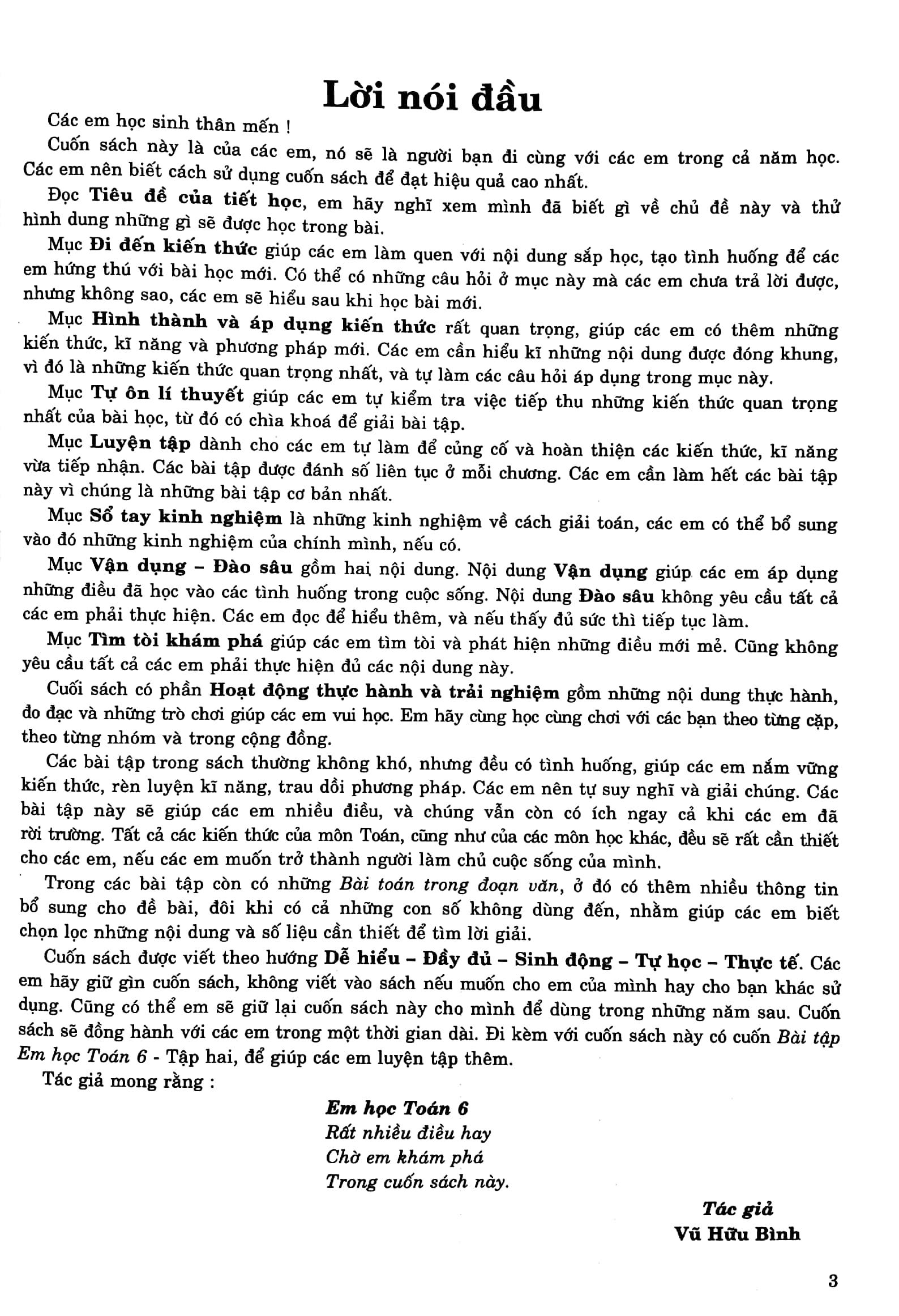 Các em nên dùng kèm 2 quyển Bài tập Em học Toán 6 với 2 quyển Em Học Toán 6 để luyện tập thêm các kĩ năng giải toán mà các em học được trong sách giáo khoa, từ đó củng cố và phát triển năng lực của bản thân để tự tin giải chính xác bất kì bài toán nào các em gặp ở các bài kiểm tra Toán 6.