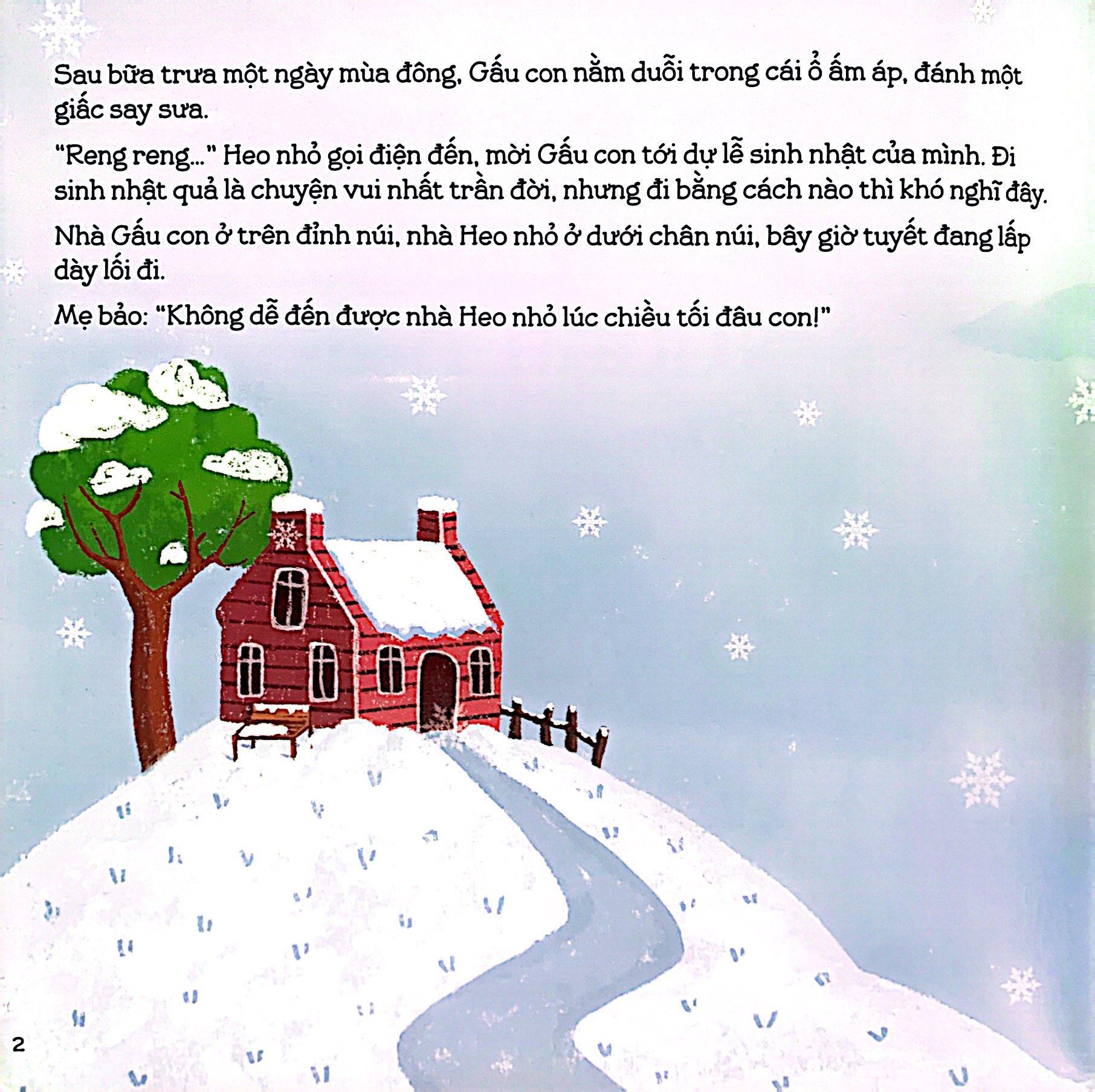 Quanh quẩn trong nhà cả một mùa đông, cuối cùng cũng có cơ hội đi sinh nhật Heo nhỏ, nhưng trời đổ tuyết dày làm Gấu con khó lòng đến kịp giờ hẹn. May sao mẹ đã chuẩn bị sẵn tấm ván trượt giúp cậu giảm “áp suất” tác động lên nền tuyết, cứ thế lướt đi như bay!