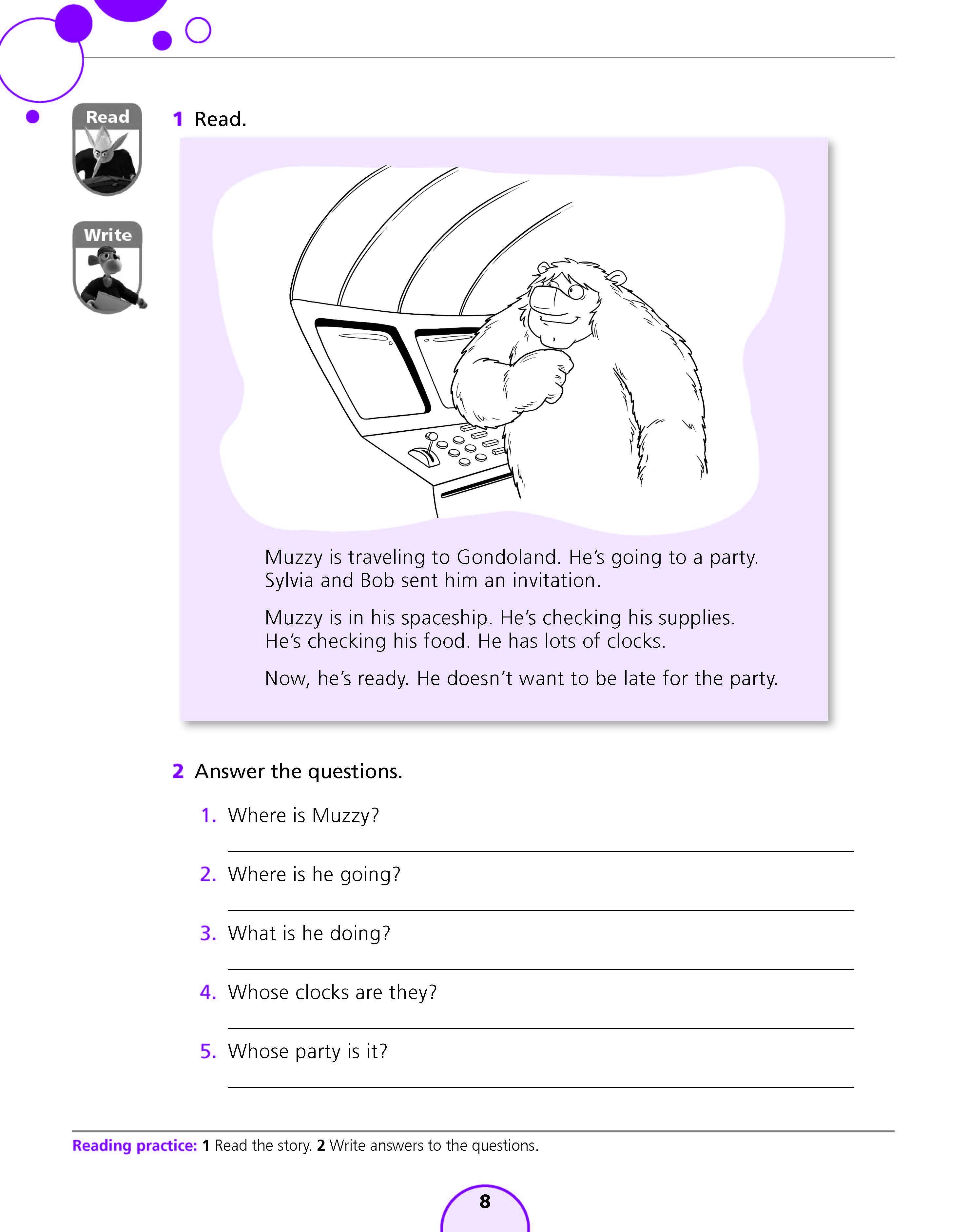 Những cuốn sách giáo khoa này sử dụng các video và cốt truyện gốc của Muzzy làm nền tảng để xây dựng các kỹ năng ngôn ngữ cơ bản và phát triển từ vựng, ngữ pháp, phát âm và sự trôi chảy ở trẻ học tiếng Anh như một ngoại ngữ.