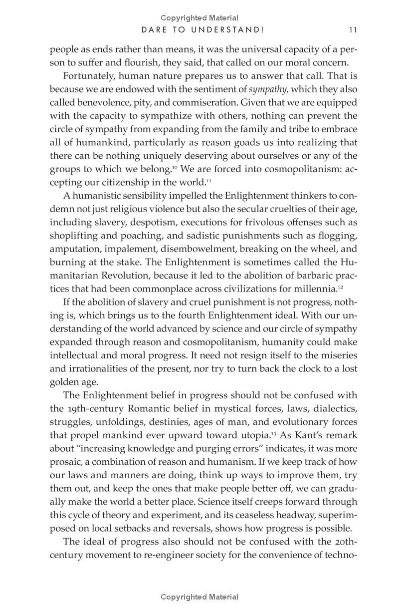 Harvard psychology professor Pinker (The Sense of Style) defends progressive ideals against contemporary critics, pundits, cantankerous philosophers, and populist politicians to demonstrate how far humanity has come since the Enlightenment. These ideals, as well as
