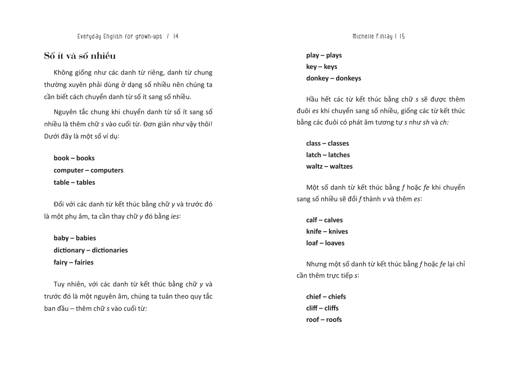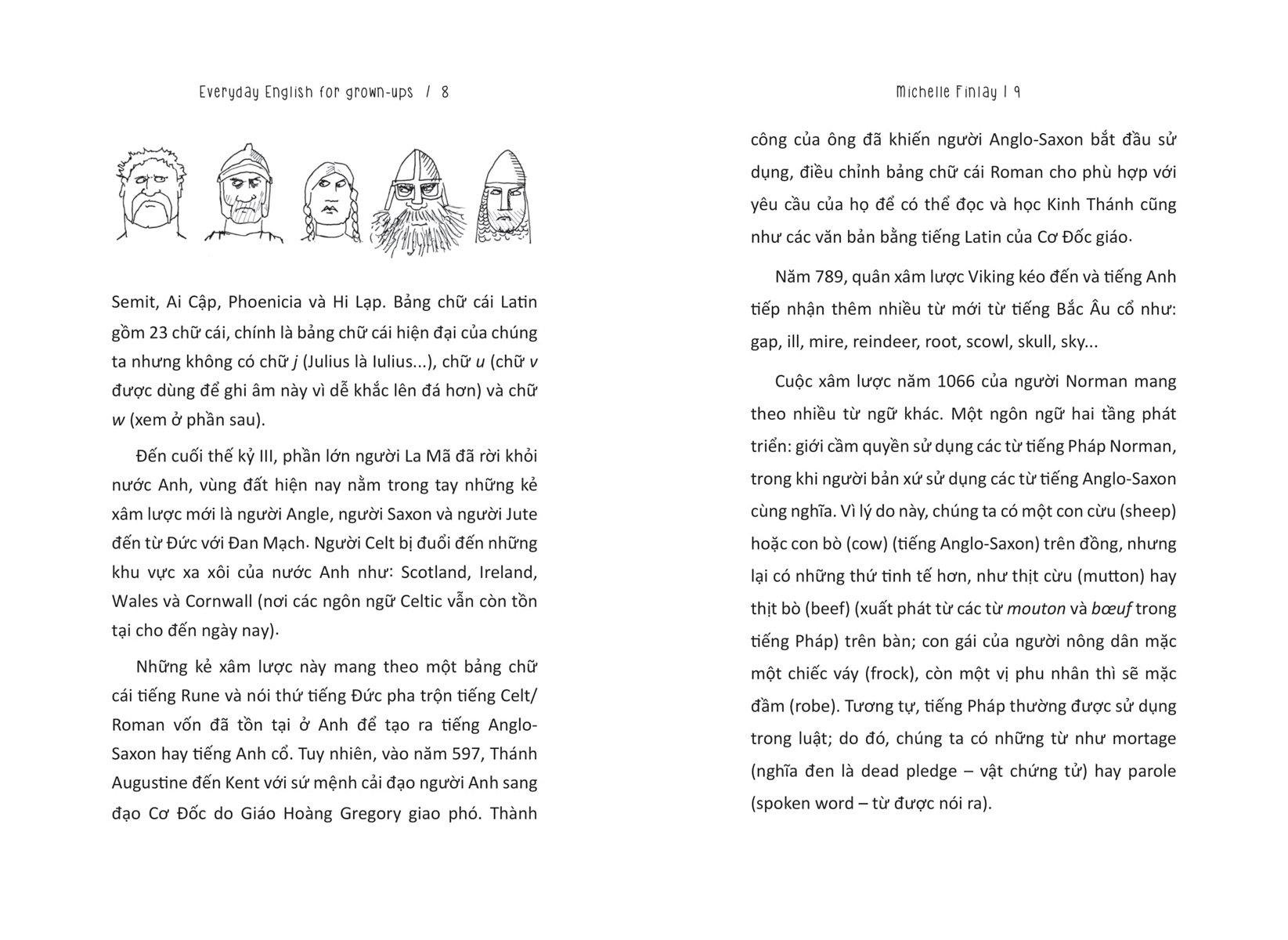 Everyday English For Grown-Ups - Tự Học Tiếng Anh Cho Người Bận Rộn   Bạn đăng bức hình ngôi nhà đẹp lộng lẫy để chia sẻ về cuộc sống sung túc của mình trên mạng xã hội nhưng dòng trạng thái lại là: “It’s is my life.”     Mọi nỗ lực diễn đạt đều trở nên vô nghĩa một khi đã SAI NGỮ PHÁP. Vậy chẳng lẽ mỗi khi cần dùng đến tiếng Anh, bạn phải kè kè vài cuốn sách dày cộp bên cạnh hay sao?     Câu trả lời là: Không, vì bạn đã có Everyday English for grown-ups. Một cuốn sách đủ NHỎ để mang đi muôn nơi; hệ thống những kiến thức CƠ BẢN giúp bạn sử dụng ĐÚNG trong nhiều ngữ cảnh và quan trọng nhất là: Một cách học HIỆU QUẢ với thời gian EO HẸP.      Bắt đầu từ bảng chữ cái, cuốn sách sẽ từng bước khám phá từ những yếu tố cơ bản của tiếng Anh viết và nói – chính tả, trật tự từ, dấu câu, từ loại – cho đến ngữ điệu, những sai lầm cần tránh và bí quyết để đảm bảo tính mạch lạc và thậm chí là tính thanh lịch.     Hãy luyện tập mỗi ngày và bạn sẽ tránh được những lỗi sai “dở khóc dở cười” khi sử dụng thứ ngôn ngữ toàn cầu này, bạn nhé!