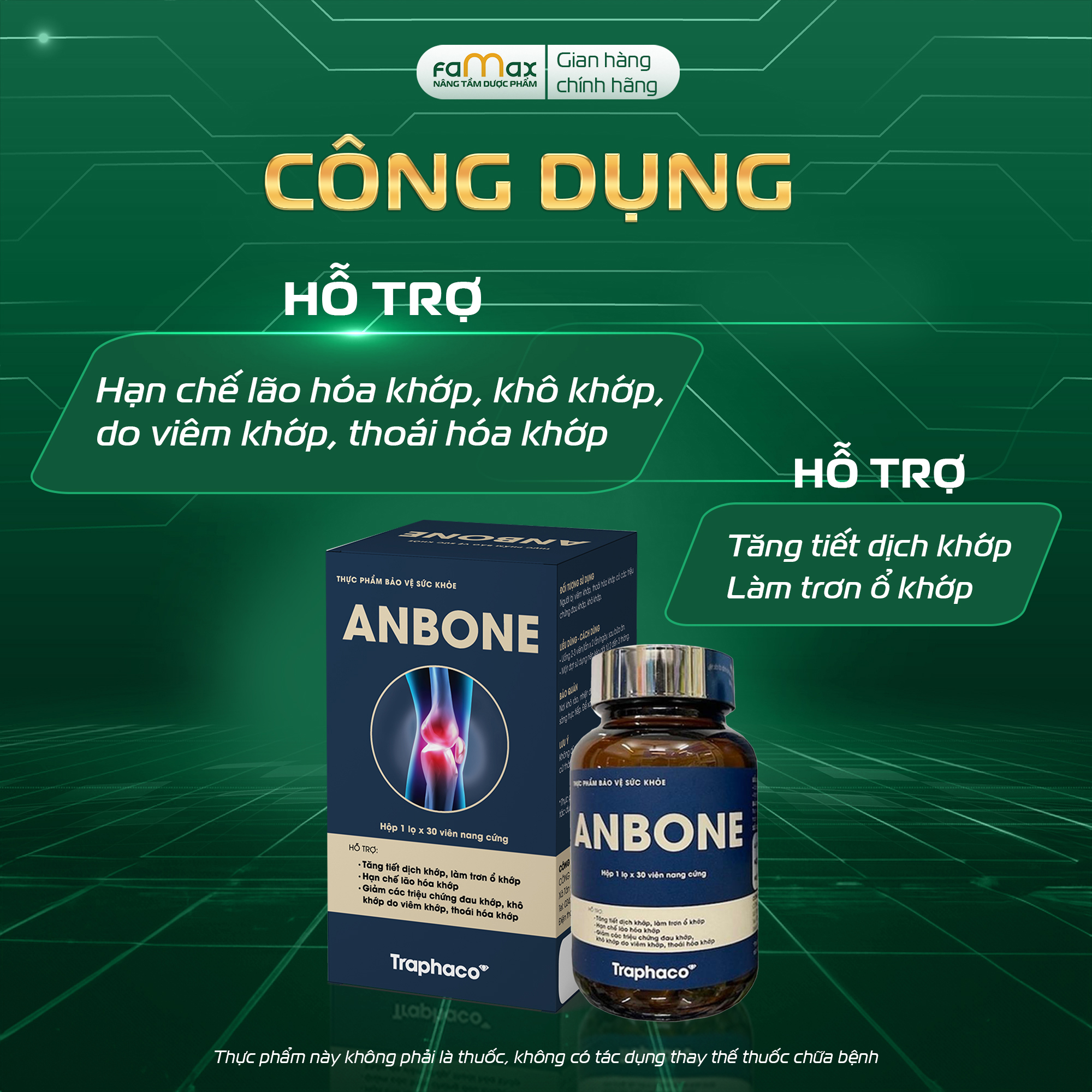 ✨[FAMAX] Thực Phẩm Bảo Vệ Sức Khỏe Anbone Hỗ Trợ Tăng Tiết Dịch Khớp Giảm Đau Khớp Hộp 30 Viên