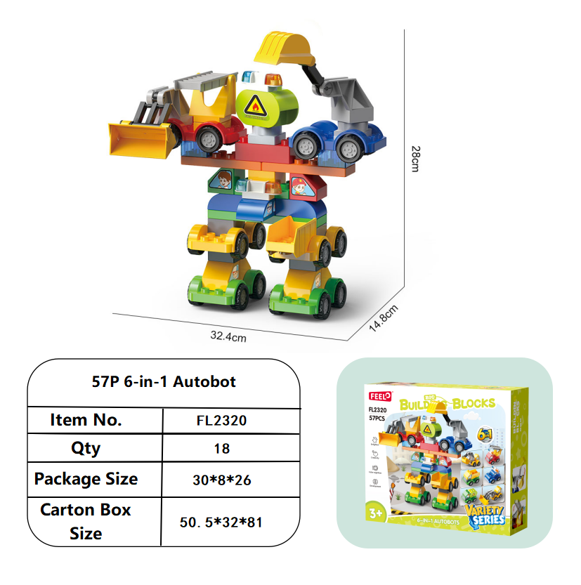 ✨FEELO - 2320 - Lắp Ráp Robot Xây Dựng 6in1 (57 Chi Tiết)