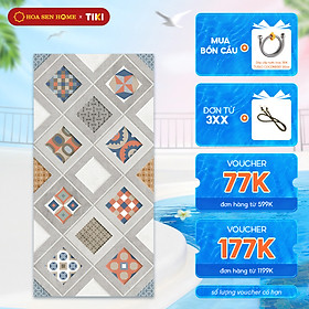 Họa tiết của gạch ốp tường là sự kết hợp giữa các tone màu xanh lam, đỏ, be, xám, trắng và nâu tạo nên một gam màu tổng thể rực rỡ và bắt mắt, nổi bật khi ốp tường trang trí. Bên cạnh đó, họa tiết là những khối hình 2D xếp trong khối vuông tạo nên những hoa văn tối giản và hiện đại giúp hài hòa và tăng tính sinh động cho không gian nội thất xung quanh.