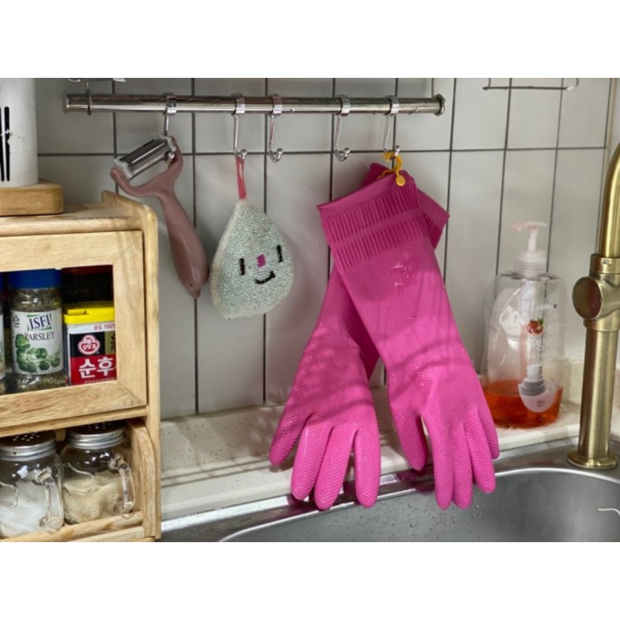 Mua tại TiktokGăng tay cao su rửa chén nhà bếp xuất Hàn Quốc siêu dai có móc treo L-38cm