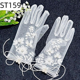 ✨Găng tay cô dâu vải voan đính hoa mẫu ngắn