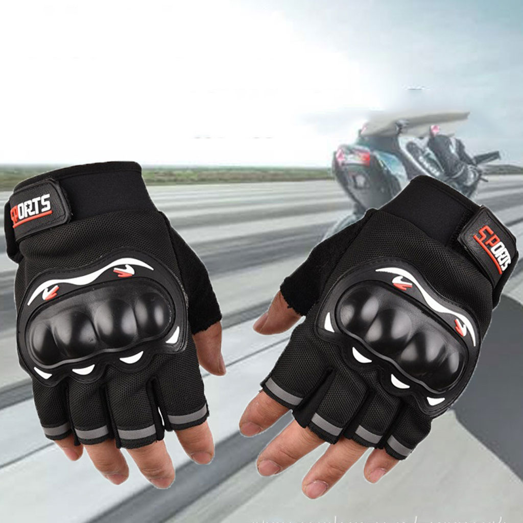 Găng tay hở ngón dành cho người đi moto - xe máy Chất liệu: Vải Airmesh, gù nhựa cứng, da lộn, lòng bàn tay có hạt cao su tăng độ bám Loại găng hở ngón