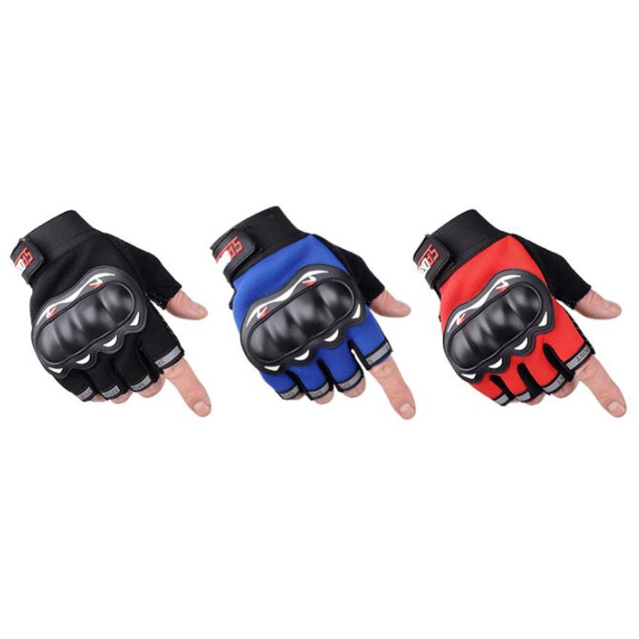 Găng tay hở ngón dành cho người đi moto - xe máy Chất liệu: Vải Airmesh, gù nhựa cứng, da lộn, lòng bàn tay có hạt cao su tăng độ bám Loại găng hở ngón