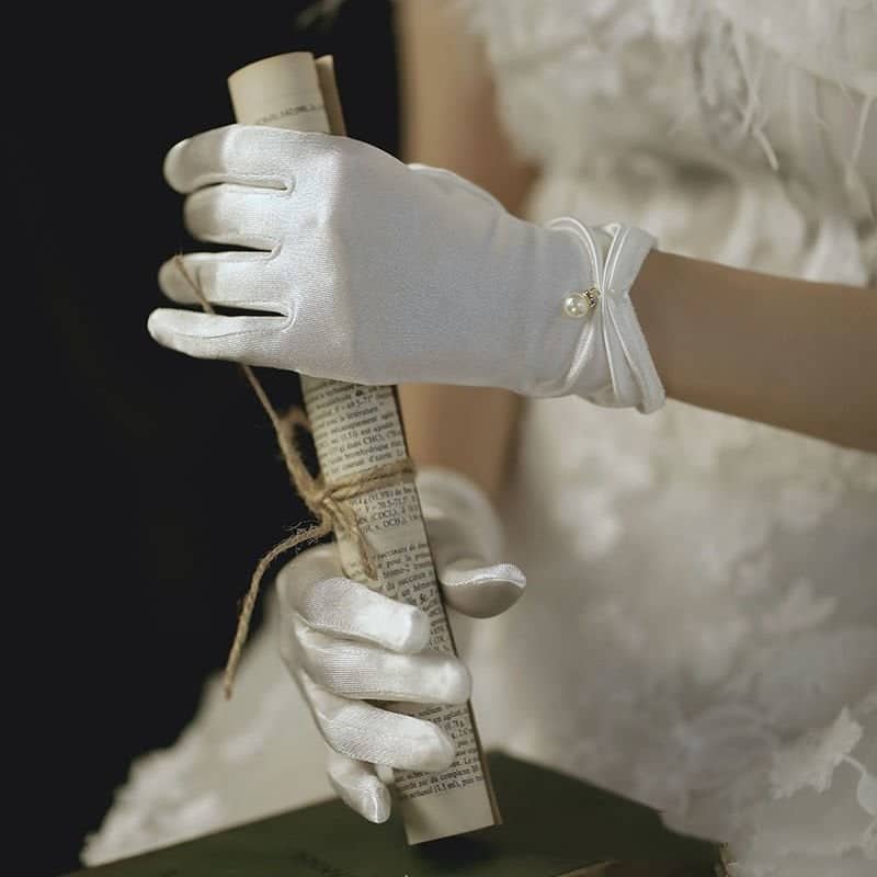 ✨Găng tay lụa bóng sang trọng màu trắng cho Cô dâu và Dạ hội, đi tiệc, sự kiện, lễ hội, chụp ảnh MS: 43246