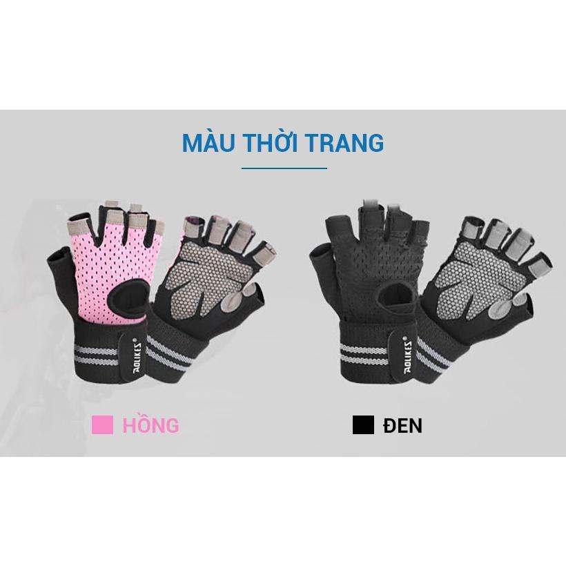 Găng tay Aolikes 113B cụt hở ngón, bao tay thể thao gym có cuốn cổ tay đệm lòng bàn tay gym đẩy tạ AOLIKES 113B (1 đôi) - Găng hở lưng thường - có cuốn