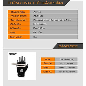 Găng Tay Nửa Ngón Tập Gym, Tập Tạ Tích Hợp Quấn Cổ Tay Aolikes AL113B AL113 113 (1 đôi) - Chính Hãng ---- BẢNG SIZE TRONG PHẦN HÌNH ẢNH ----- - Cách chọn size +