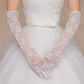 Găng tay Cô dâu và Dạ hội, đi tiệc, sự kiện MS: 42222 Chất liệu: cotton. Kiểu dáng: bao kín ngón, ôm tay. Đặc điểm: dáng dài, co giãn nhẹ. Hoạ tiết: ren hoa. Độ