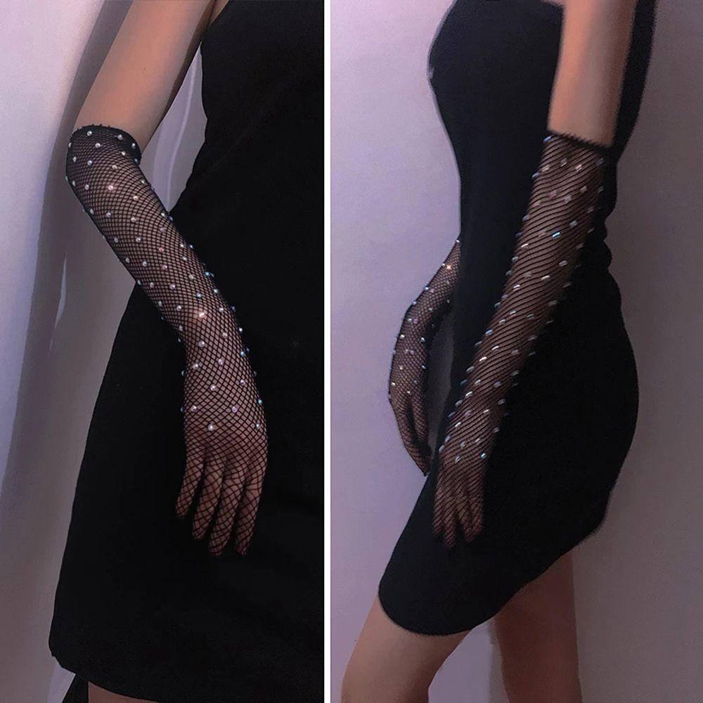 ✨Găng tay sang chảnh màu đen dạng lưới đính đá lấp lánh cho Cô dâu và Dạ hội, đi tiệc, sự kiện, lễ hội MS: 42951
