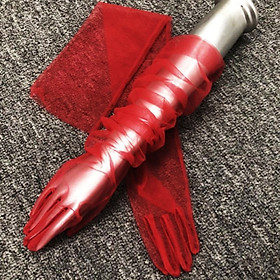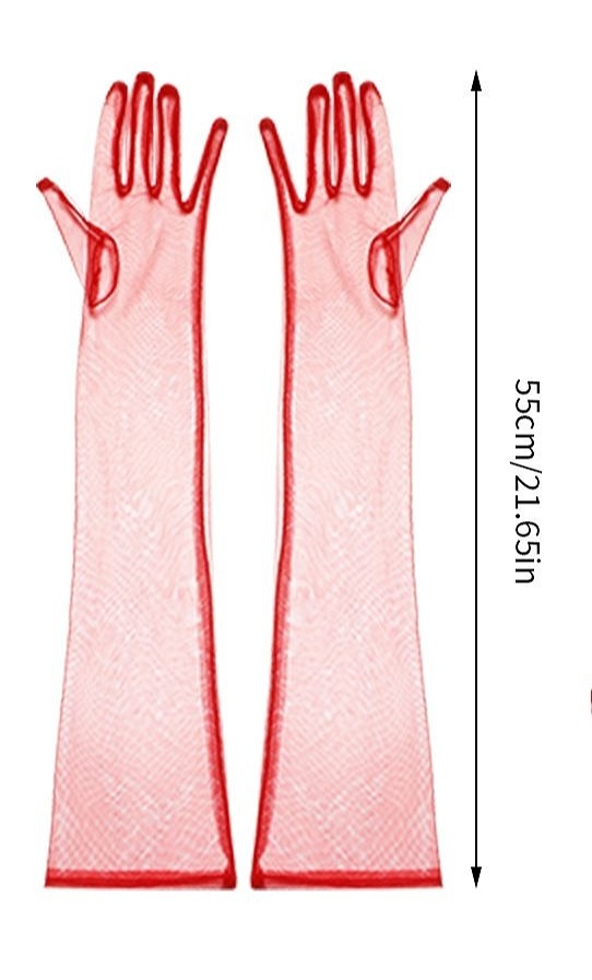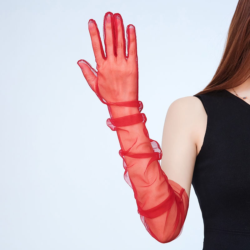 ✨Găng tay vải tuyn trong suốt thời trang màu đỏ cho Cô dâu và Dạ hội, đi tiệc, sự kiện, lễ hội, chụp ảnh MS: 43025