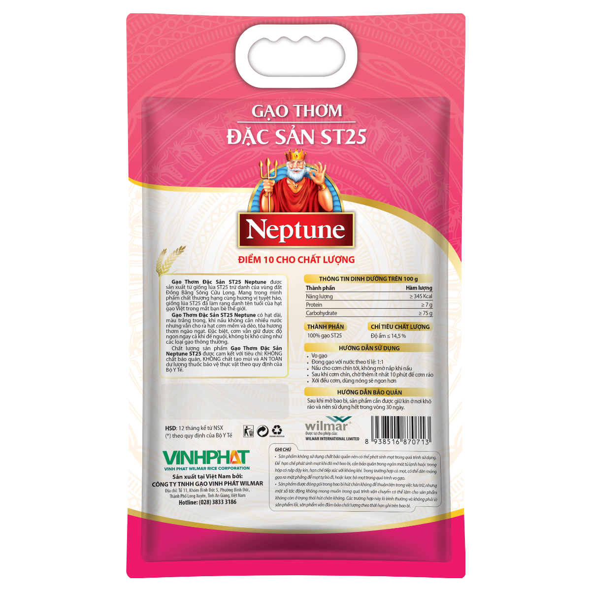 Gạo thơm đặc sản ST25 Neptune túi 5kgGạo thơm ST25 Neptune túi 5kg là sự kết hợp giữa giống lúa ST25 trứ danh của vùng đất Đồng Bằng Sông Cửu Long và quy trình sản xuất hiện đại, khép kín của thương ...