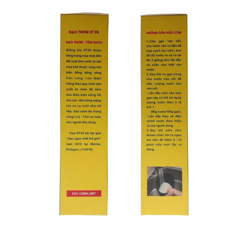 Gạo ST25 Lúa Tôm "Gạo ngon nhất thế giới năm 2019" được đóng túi 2kg hút chân không, đóng hộp.