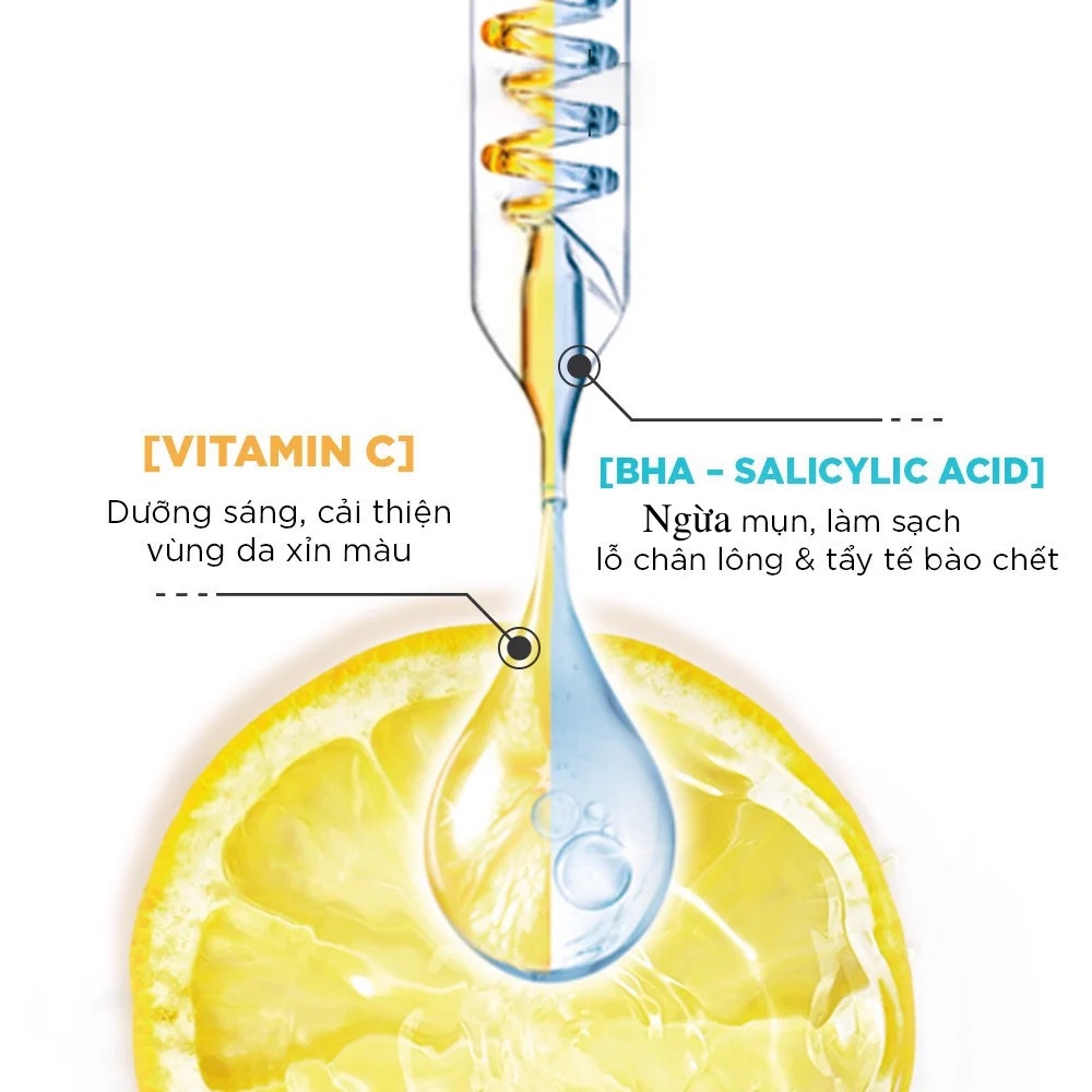 • Với công thức 4% Phức Hợp [Vit C + BHA + Niacinamide + AHA] làm hạn chế lượng bã nhờn, tiêu sừng làm sạch tế bào chết, mờ thâm nám, sáng da: