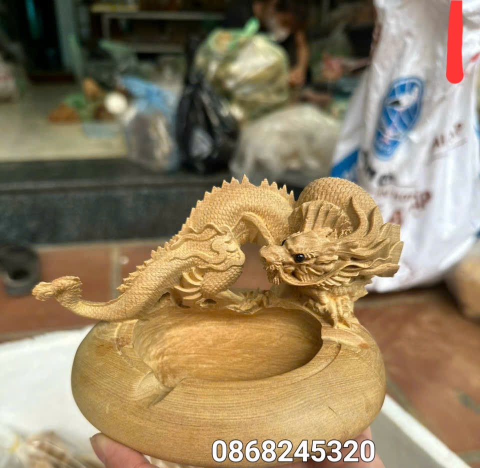 ✨Gạt tàn khắc rồng bằng gỗ bách xanh thơm phức kt 15x10×9cm