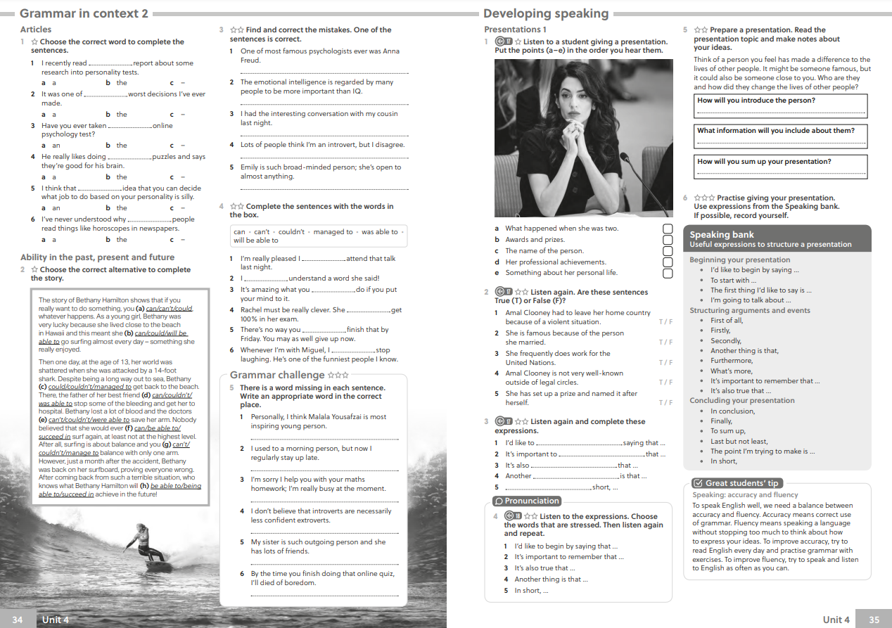 What makes a hero? What is an ideal school? Why do people dress up? Each unit starts with a question to generate curiosity and every student gets involved. Throughout the unit learners gain the knowledge, the language, and skills to answer the question in the end-of-the-unit Collaborative Project. Completing the project gives students an opportunity to use the new language and skills straightaway.