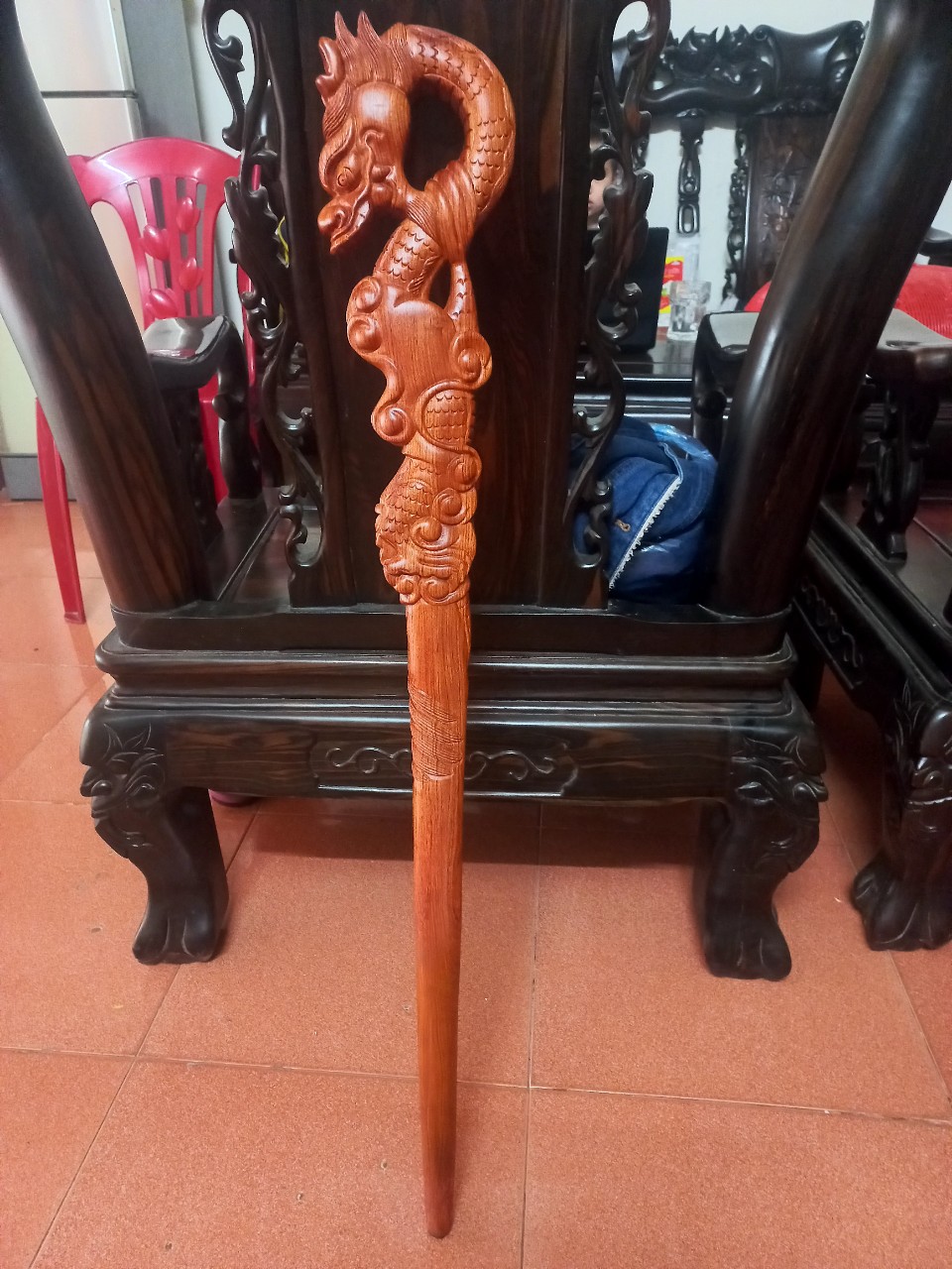 Đặc điểm nổi bật Gậy được khắc rồng cuốn từ đầu xuống chân tỉ mỉ ,tinh xảo kỳ công .Đi hầu hết tất cả mọi chi tiết góc ngách nội dung hoa văn của gậy