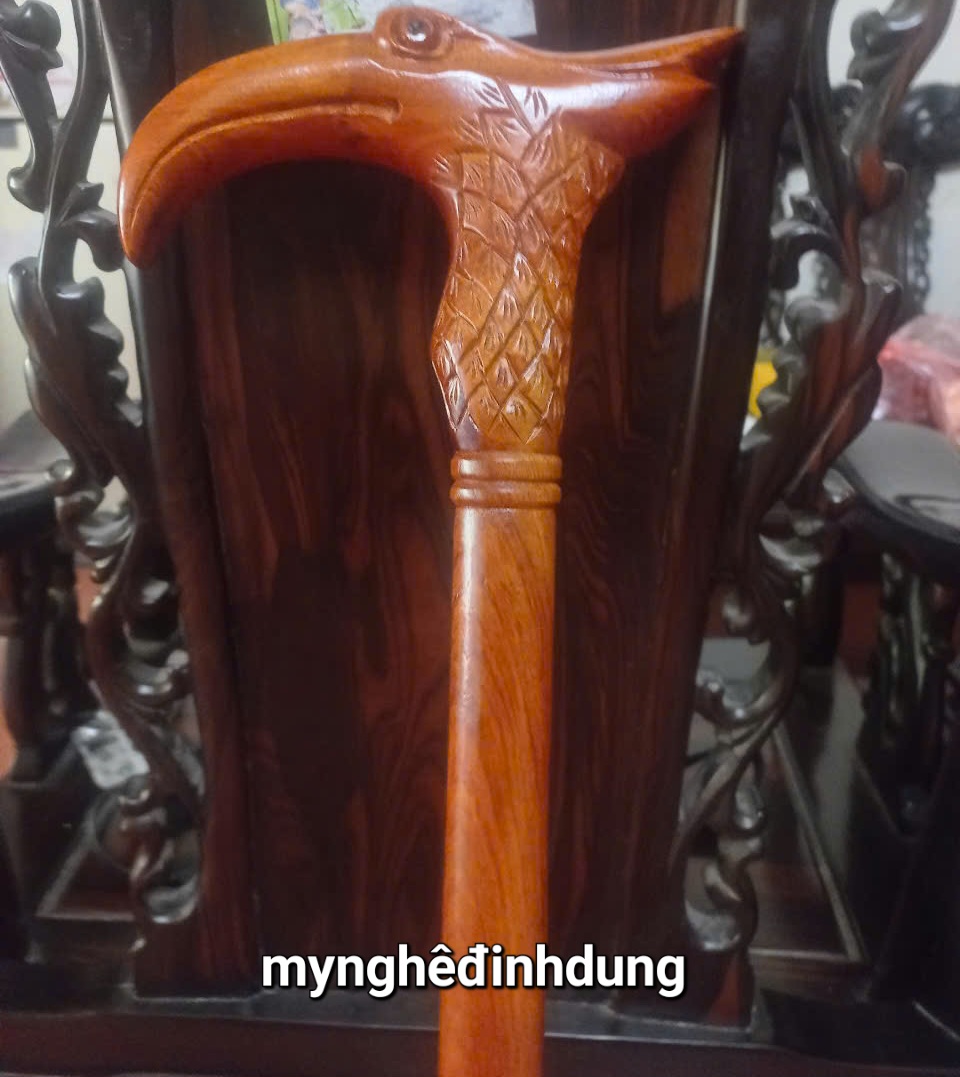 ✨Gậy batong khắc đầu đại bàng bằng gỗ hương đẹp long lanh dài 90x3cm