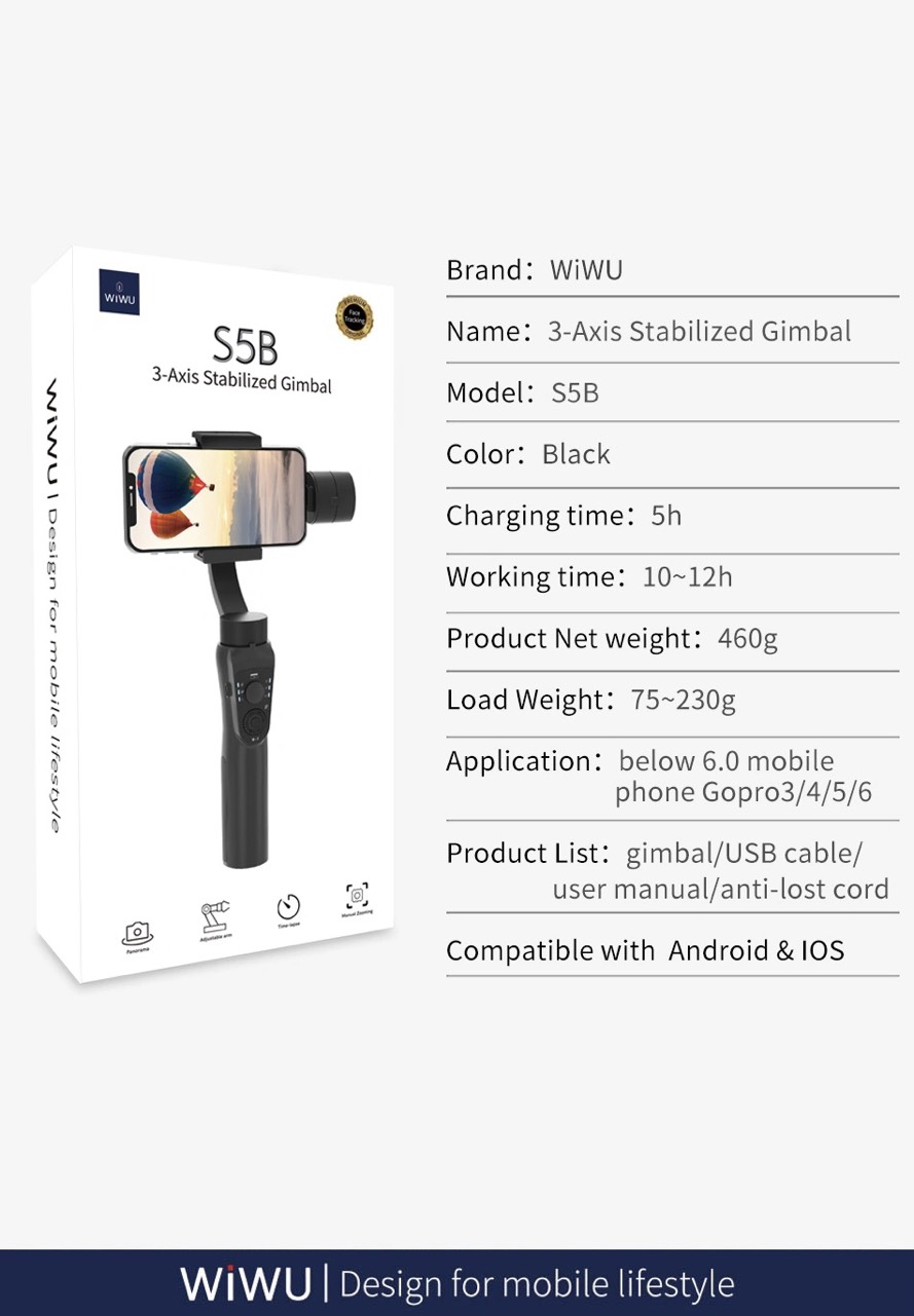 ✨Gậy chống rung Wiwu 3-Axis Stabilized Gimbal S5B cho điện thoại thông minh dưới 6 inch, hỗ trợ chụp toàn cảnh 180 độ/ 330 độ - Hàng chính hãng