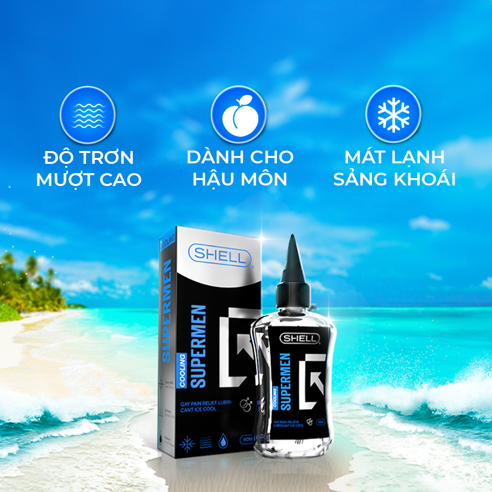 ✪ Thông tin: Nếu bạn đang tìm kiếm sản phẩm không chỉ hỗ trợ quan hệ truyền thống một cách trơn tru, mà còn hỗ trợ quan hệ cửa sau dễ dàng, giúp giảm cảm giác đau rát khi ân ái, thì gel bôi trơn hậu môn Shell Supermen Cooling là sự lựa chọn tin cậy. Gel bôi trơn hậu môn Shell Supermen Cooling tạo cảm giác mát lạnh cho cuộc "yêu" với thiết kế dành riêng cho cộng đồng LGBT với đầu ống bơm tiện lợi dễ dàng sử dụng bôi trơn làm giảm ma sát, đau rát khi quan hệ cửa sau đối với các cặp đôi đồng giới.  ✪ Thành phần: Gốc silicon lành tính không hóa chất độc hại, an toàn cho làn da, không bị kích ứng. ✪ Đặc điểm: Tạo chất bôi trơn cho quan hệ dễ dàng hơn, đem lại cảm giác mát lạnh khi quan hệ. ✪ Cách dùng: Lắc đều sản phẩm trước khi sử dụng. Lấy một lượng gel vừa đủ bôi trực trực tiếp lên vùng hậu môn, “cậu bé”. Tiến hành massage cho gel thấm đều và bắt đầu quan hệ. Vệ sinh sạch cơ thể hoặc các dụng cụ hỗ trợ với nước ấm. ✪ Quy cách: Chai 90ml ✪ Thương hiệu: Shell ✪ Bảo quản: Bảo quản khô ráo, thoáng mát ✪ Hạn sử dụng: 05 năm