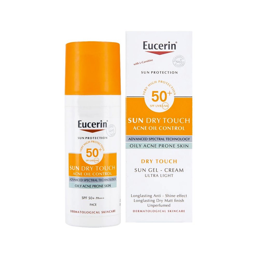 - Gel Chống Nắng Cho Da Nhờn Mụn Eucerin Sun Gel-Cream Dry Touch Oil Control SPF50+ (50ml) có thể dùng hàng ngày. Với các thành phần: - Licocalcone A & CA giúp giải quyết 80%