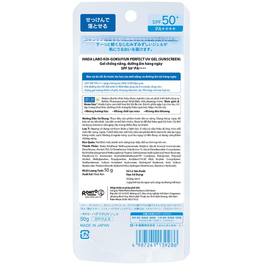 ✨Gel chống nắng dưỡng ẩm Hada Labo Koi-Gokujyun Perfect Uv Gel (Sunscreen) SPF50+ PA++++ 50g