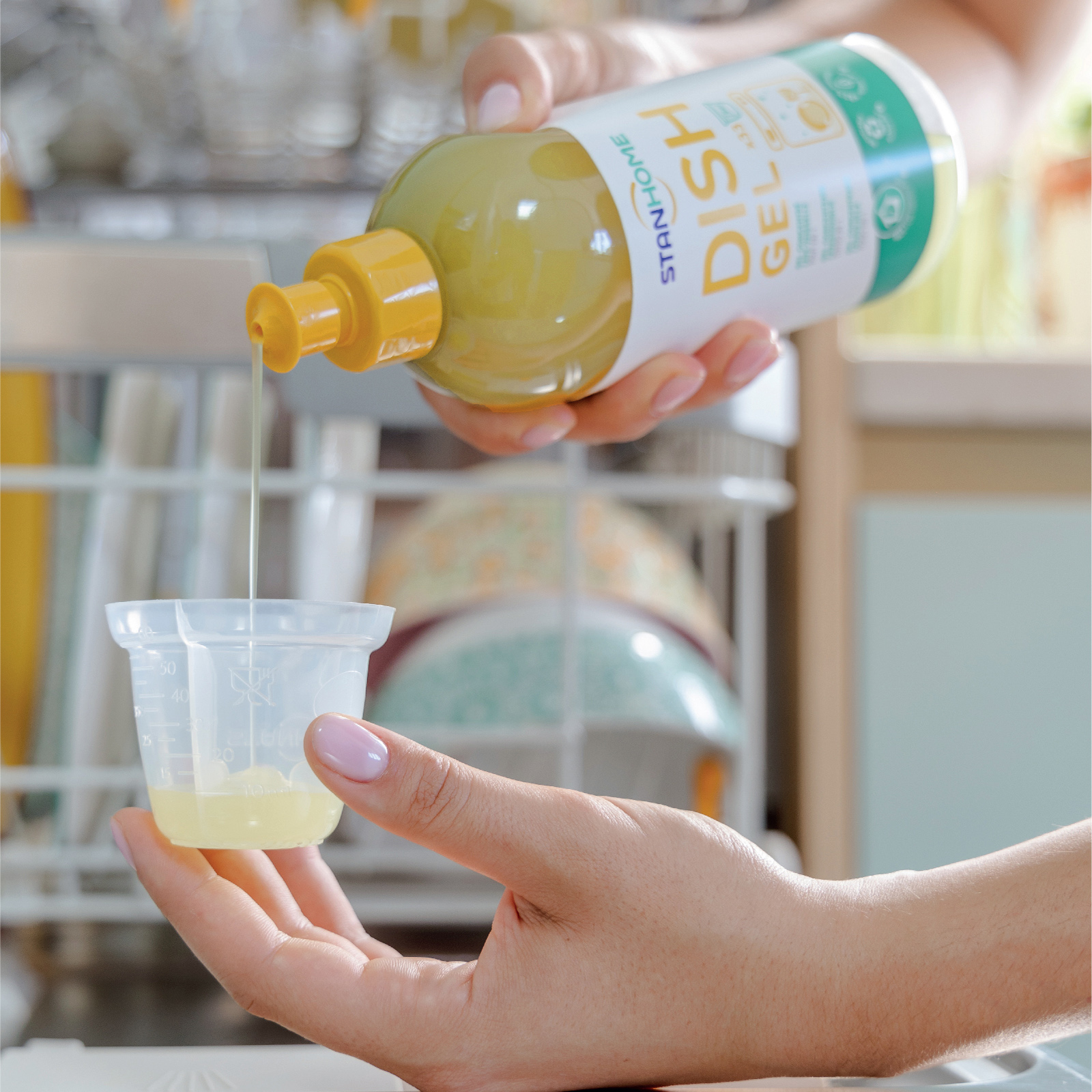 DISH GEL All in One 500ml Gel rửa bát chuyên dụng cho máy nguyên liệu từ tự nhiên với hương gỗ và hương biển tươi mát All in One Stanhome DISH GEL WOODY Xuất xứ: