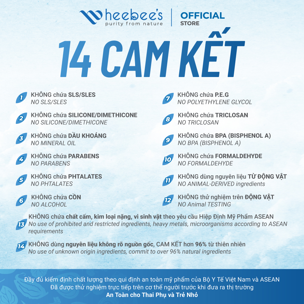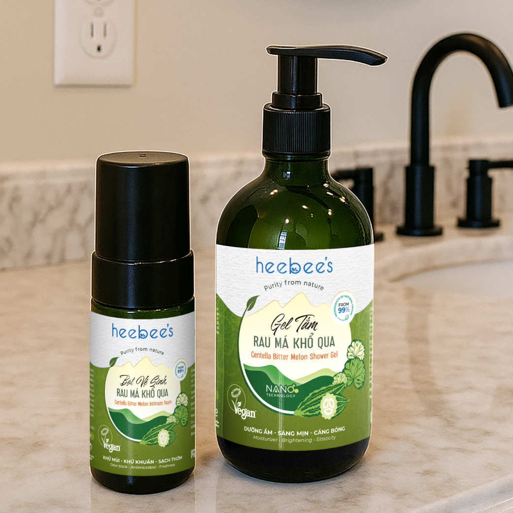 Mua tại TiktokGEL TẮM RAU MÁ KHỔ QUA RỪNG THUẦN CHAY HEEBEE'S GIẢM RÔM SẨY, DƯỠNG ẨM, DA SÁNG MỊN MÀNG 300/500ML ĐIỂM NỔI BẬT Bắt đầu từ nhu cầu tưởng chừng nhỏ bé: một làn da sạch mà không khô, một lần tắm đủ đầy dưỡng chất. Heebee’s ra mắt Gel Tắm Rau Má Khổ Qua Rừng Thuần Chay – phiên bản chăm sóc cơ thể cao cấp nhất, ứng dụng công nghệ chiết tách xanh độc quyền, thay nước tinh khiết bằng hydrosol tràm trà và hệ dưỡng chất thực vật đậm đặc gấp 3 lần. Kết hợp hoạt chất tạo bọt thế hệ mới từ ngô & dầu dừa, pH 5.5 lý tưởng cho cả bé sơ sinh, mẹ bầu và làn da nhạy cảm. Đây không chỉ là Gel Tắm, mà là tinh chất dưỡng lành từ thiên nhiên với khả năng làm sạch bụi bẩn, dầu thừa, loại bỏ các vi khuẩn, vi nấm gây bệnh trên da và giúp da luôn ẩm mượt, khỏe mạnh cả ngày. THÀNH PHẦN CHÍNH ĐIỀU GÌ KHIẾN GEL TẮM RAU MÁ KHỔ QUA RỪNG THUẦN CHAY HEEBEE'S KHÁC BIỆT? CAM KẾT SẢN PHẨM CÔNG DỤNG ‣ Làm sạch da toàn thân, tăng sức đề kháng ngoài da, ngăn ngừa các bệnh da liễu ‣ Loại bỏ vi khuẩn, nấm, mụn, vảy nến, khô sần ‣ Ngừa rôm sảy, mẩn ngứa, phục hồi và làm dịu làn da nhạy cảm, dễ kích ứng ‣ Thúc đẩy sản sinh Collagen, làm mờ các vết thâm, sạm trên da ‣ Duy trì độ ẩm tự nhiên cho làn da trong mọi điều kiện thời tiết ‣ Loại bỏ mùi cơ thể, lưu giữ hương thơm dịu nhẹ cả ngày ĐỐI TƯỢNG SỬ DỤNG ‣ Phù hợp với mọi loại da, mọi độ tuổi và mọi đối tượng. ‣ 100% Dịu nhẹ với da nhạy cảm, da dễ bị kích ứng, viêm da cơ địa. ‣ 100% An toàn cho phụ nữ mang thai, cho con bú, bé sơ sinh và trẻ em. Đặc biệt tốt khi sử dụng cho người bị mụn lưng, trẻ bị rôm sẩy, chàm sữa, dị ứng và các đối tượng bị các bệnh lý ngoài da, và các đối tượng thường xuyên tiếp xúc nước hồ bơi, nước biển hoặc ánh nắng mặt trời. Lưu ý: Sản phẩm sử dụng nguyên liệu từ thiên nhiên, đã qua kiểm định an toàn và đạt chất lượng. Tuy nhiên, cần lưu ý với người có cơ địa mẫn cảm với bất kỳ thành phần nào trong sản phẩm. CÁCH SỬ DỤNG Làm ướt cơ thể, lấy 1 lượng gel vừa đủ ra tay, xoa tạo bọt cùng nước rồi thoa đều và massage nhẹ nhàng làm sạch khắp bề mặt da. Sau đó tắm lại với nước sạch. Lưu ý: Để cảm nhận bọt tốt hơn có thể tắm cùng bông tắm và tập trung massage nhẹ nhàng những vùng da cần nuôi dưỡng, để GEL TẮM được thẩm thấu sâu và phát huy tác dụng chăm sóc, dưỡng da được tốt nhất. HƯỚNG DẪN BẢO QUẢN ‣ Bảo quản nơi khô ráo, thoáng mát, tránh ánh nắng trực tiếp và nhiệt độ cao. ‣ Đậy nắp kín sau khi sử dụng. THÀNH PHẦN CHI TIẾT Melaleuca Alternifolia Leaf Water, Cocamidopropyl Betaine, Centella Asiatica Leaf Extract, Sodium Laurylglucosides Hydroxypropylsulfonate, Momordica Charantia Fruit Extract, Aloe Barbadensis Leaf Extract, Glycerin, Polysorbate 20, Inulin, Alpha-Glucan Oligosaccharide, Sodium Chloride, Panthenol, Polyquaternium-10, Silica, Xanthan Gum, Hydroxyethylcellulose, Ethylhexylglycerin, Phenoxyethanol, Parfum.
