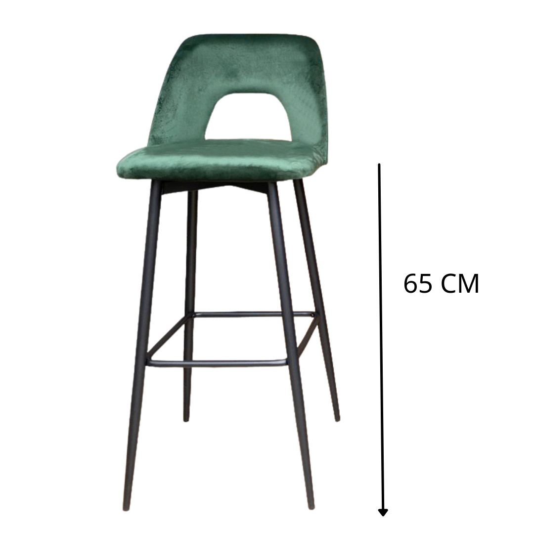 Ghế quầy bar nhập khẩu rẻ đẹp Chất liệu: chân sơn tĩnh điện màu đen, nệm bọc vải nhung Màu sắc: Xám, xanh, nâu, đỏ Ghế bar nệm vải nhung có lưng tựa sang trọng