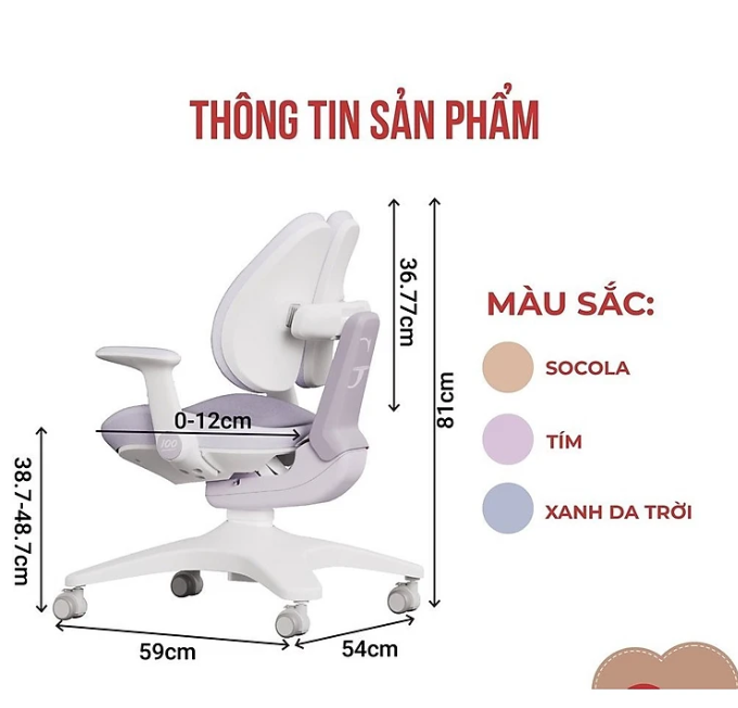 Ghế học sinh phù hợp với trẻ từ 3 đến 18 tuổi Sản phẩm có độ bền cao, độ chắc chắn và dẻo dai. Bé nhà bạn hoàn toàn có thể yên tâm ngồi thời