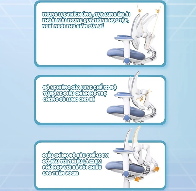 Ghế học sinh phù hợp với trẻ từ 3 đến 18 tuổi Sản phẩm có độ bền cao, độ chắc chắn và dẻo dai. Bé nhà bạn hoàn toàn có thể yên tâm ngồi thời
