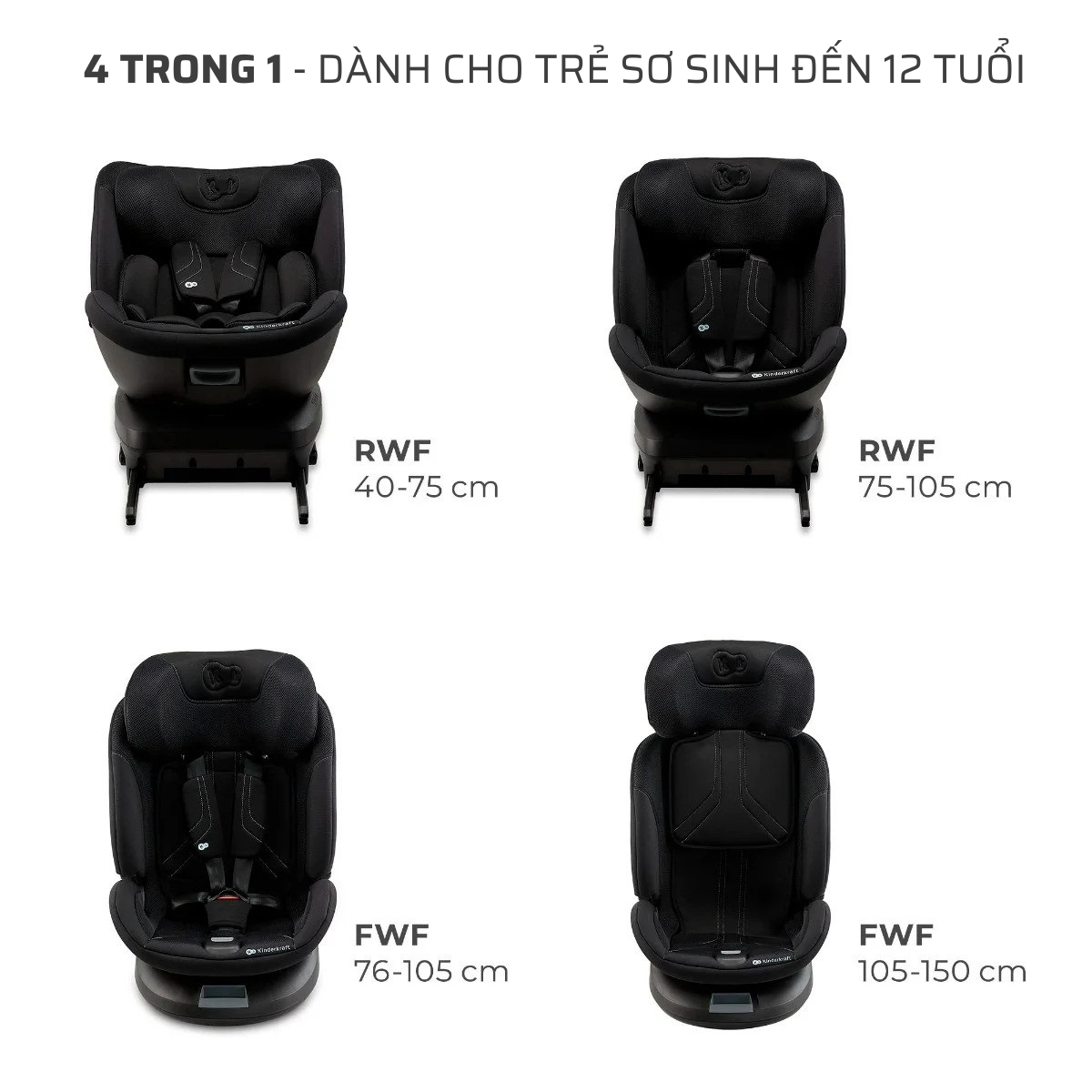 • Ghế ngồi ô tô đa chức năng 4in1 sẽ bảo vệ con bạn từ sơ sinh đến khoảng 12 tuổi: