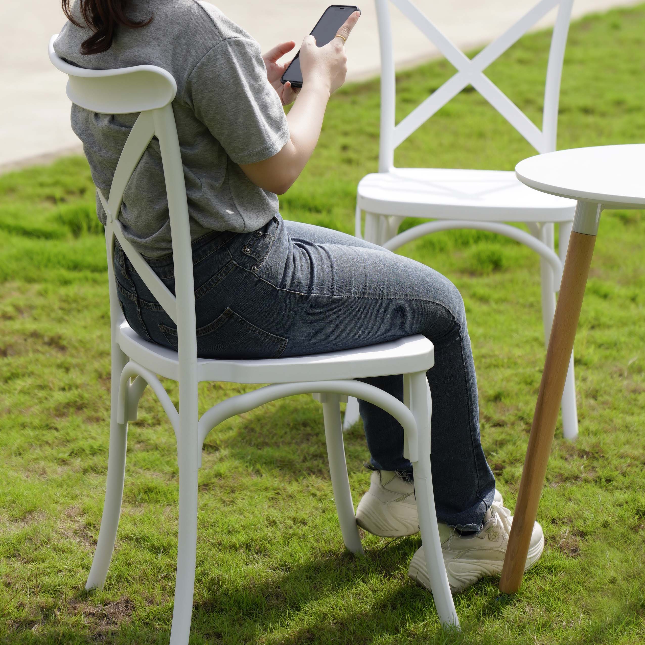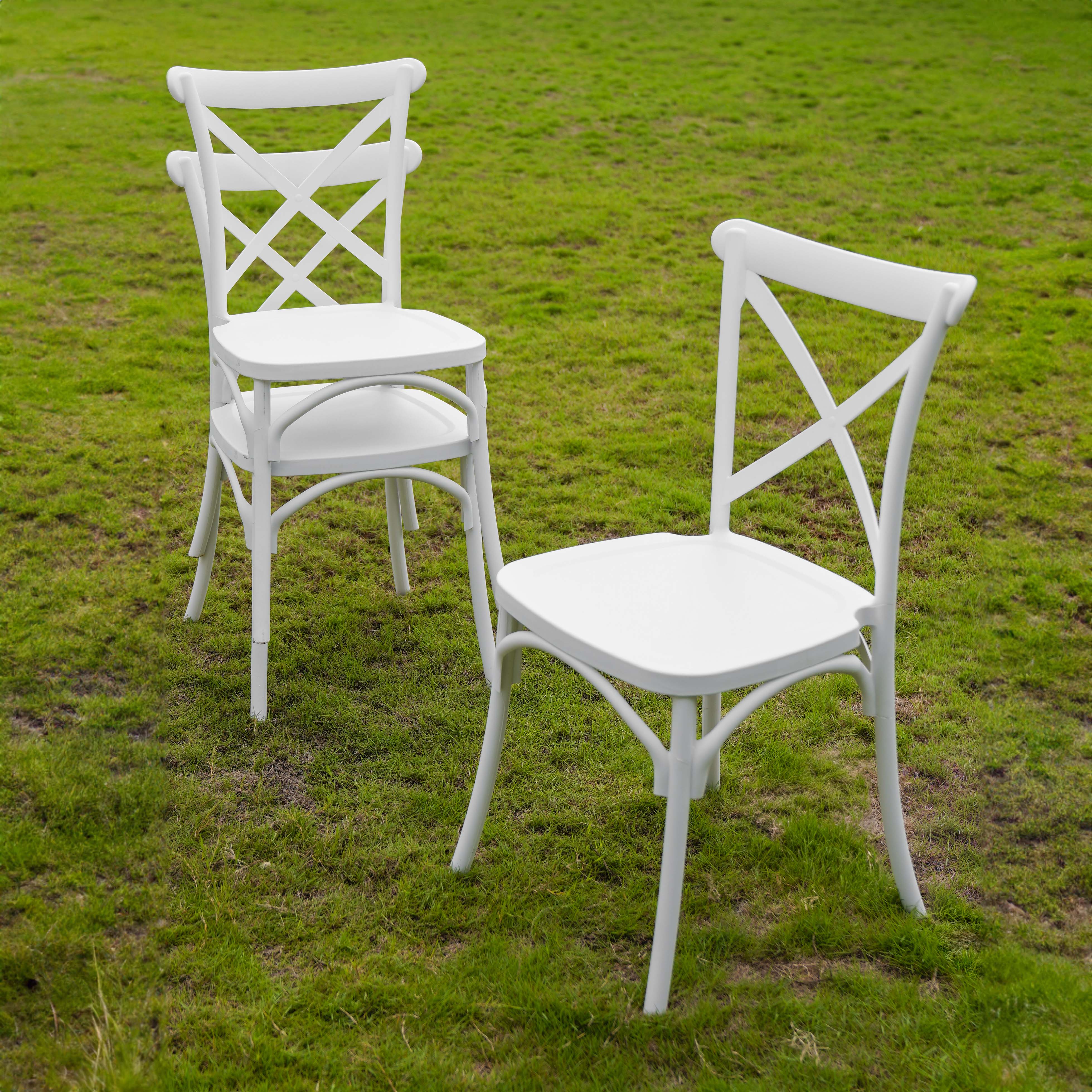 Ghế sự kiện kiểu dáng tinh tế với lưng tựa thiết kế chữ X độc đáo.