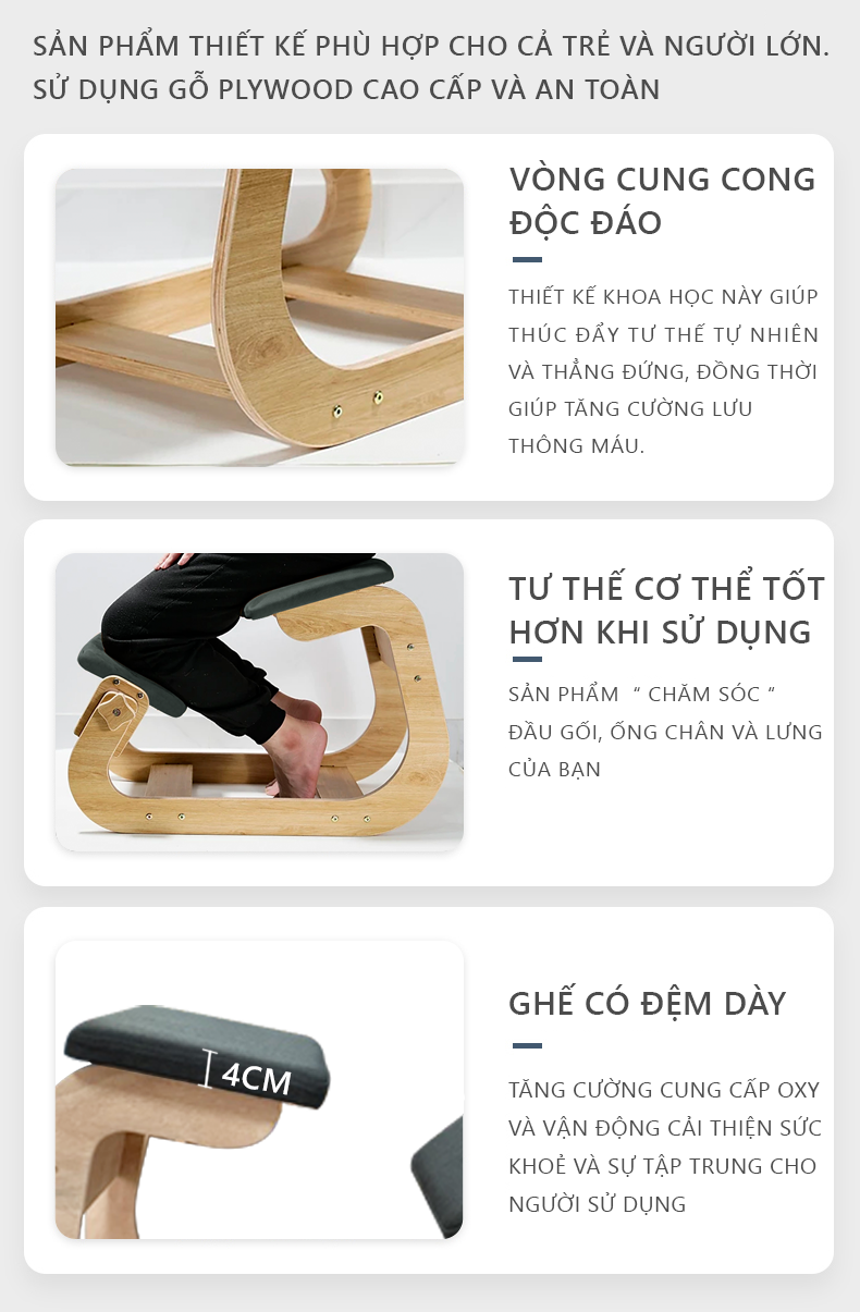 GHẾ QUỲ CÔNG THÁI HỌC CHỐNG GÙ