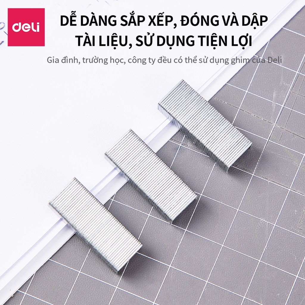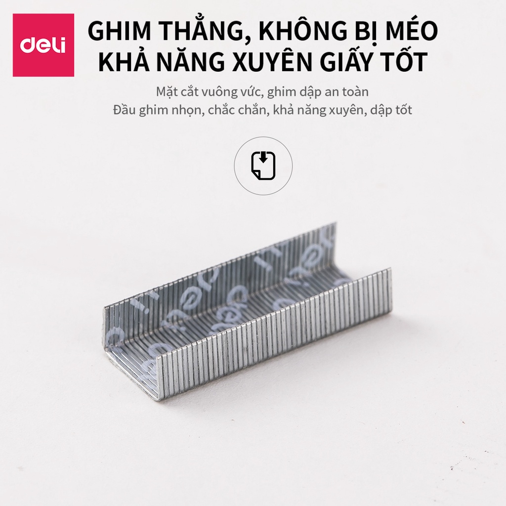 Đạn ghim số 10 Deli – Đạn ghim số 10 kích thước nhỏ sử dụng cho dập ghim (bấm kim) số 10 (cao 4.7mm, rộng 8.5mm) – Sử dụng nguyên liệu thép mạ điện giúp