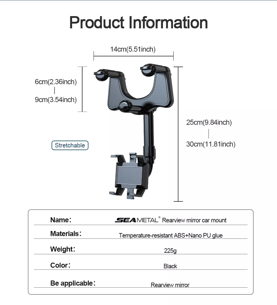 • Nếu không sử dụng, bạn có thể giấu giá đỡ phía sau gương chiếu hậu chỉ với một thao tác ấn nhẹ, không ảnh hưởng góc nhìn của bạn và không ảnh hưởng đến sự an toàn khi lái xe. [Dễ Thao Tác] Giá đỡ này cho phép điện thoại di động hoặc GPS được gắn trên gương chiếu hậu, thuận tiện cho bạn chạm màn hình chỉ bằng một tay khi lái xe và bạn có thể điều chỉnh tuyến đường điều hướng chỉ bằng một tay, để đảm bảo lái xe đảm bảo an toàn cho bạn và gia đình Chiều rộng kẹp điện thoại có thể điều chỉnh theo nhu cầu lên tới 9,5 cm đảm bảo dùng cả được những dòng điện thoại cỡ lớn