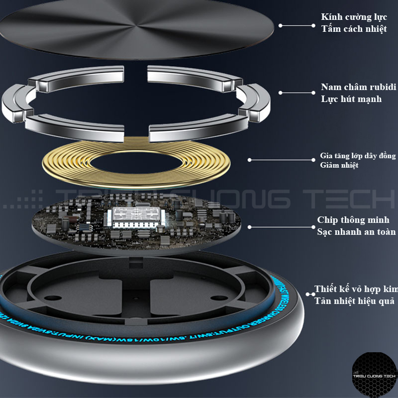 Đặc điểm sản phẩm: - Chất liệu: Hợp kim nhồm + kính cường lực + ABS + PC + Silicon - Công suất: 15W Max - Khoảng cách truyền: < 8mm - Tương thích: Thiết